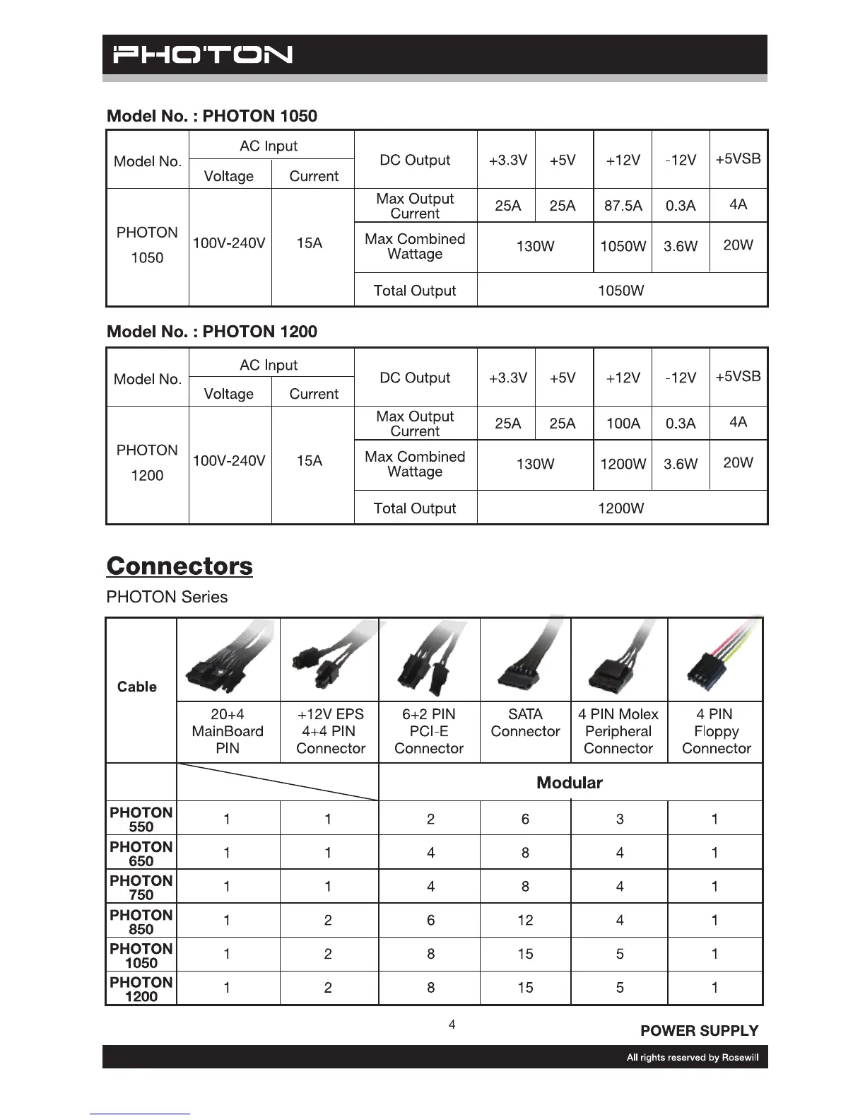 Rosewill PHOTON 550 - Connectors