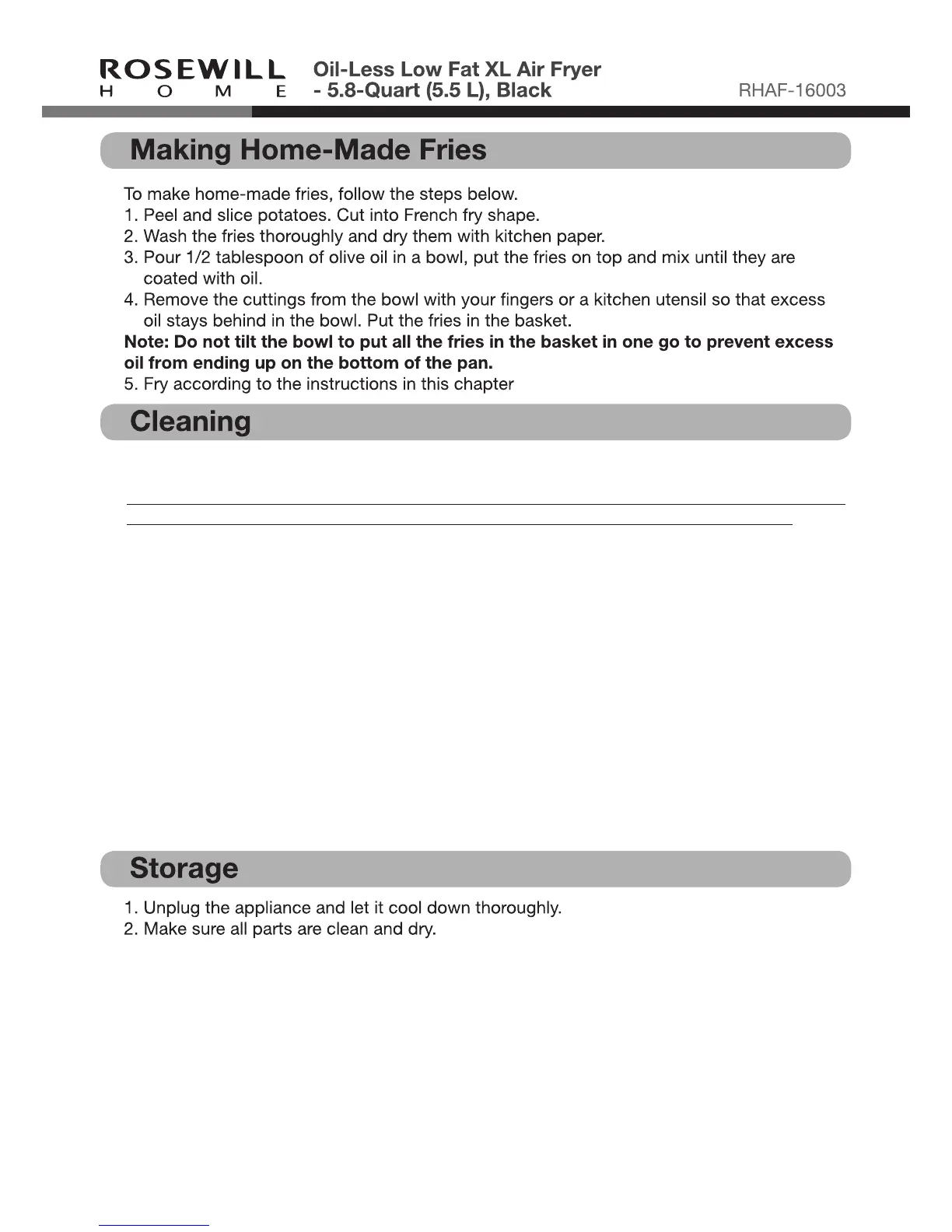 Note: The pan and basket are dishwasher-proof.