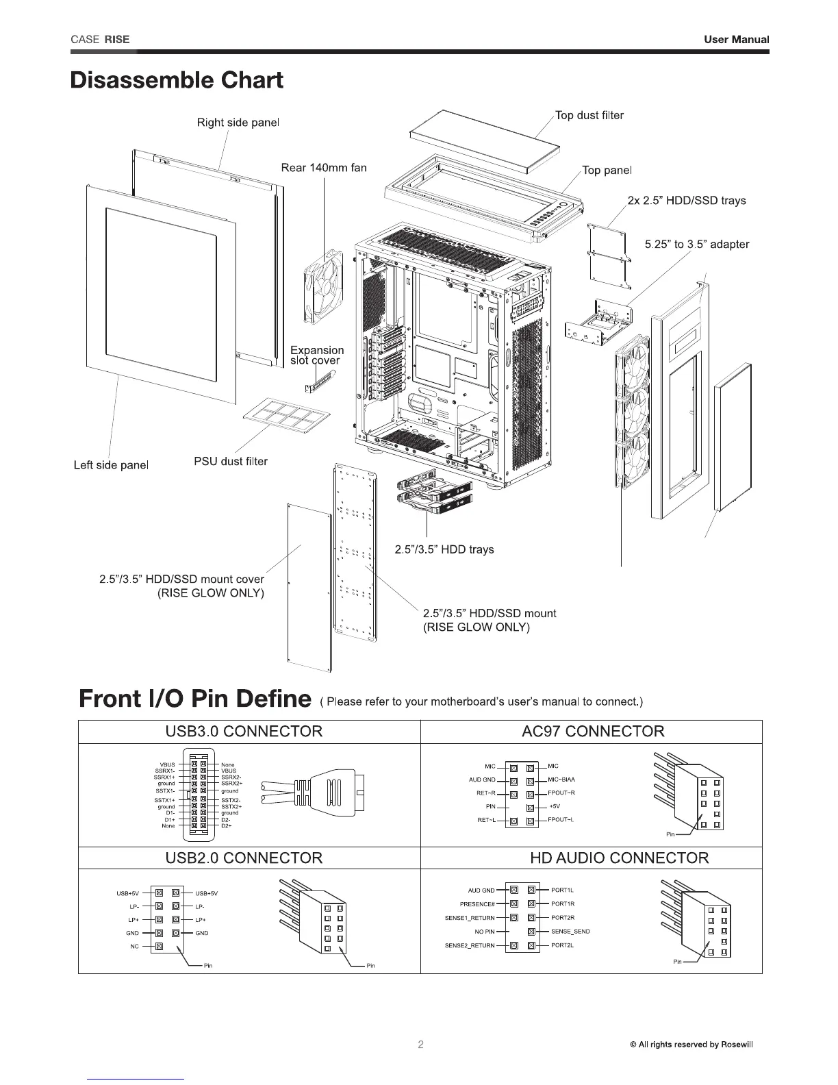 Rosewill RISE - Disassemble Chart; Front I;O Pin Define