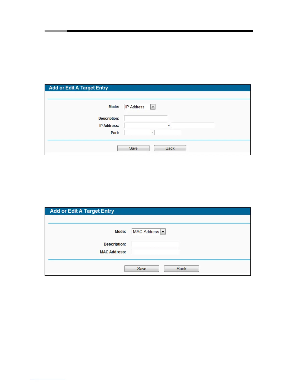 2. In Mode field, select IP Address, MAC Address or URL Address.