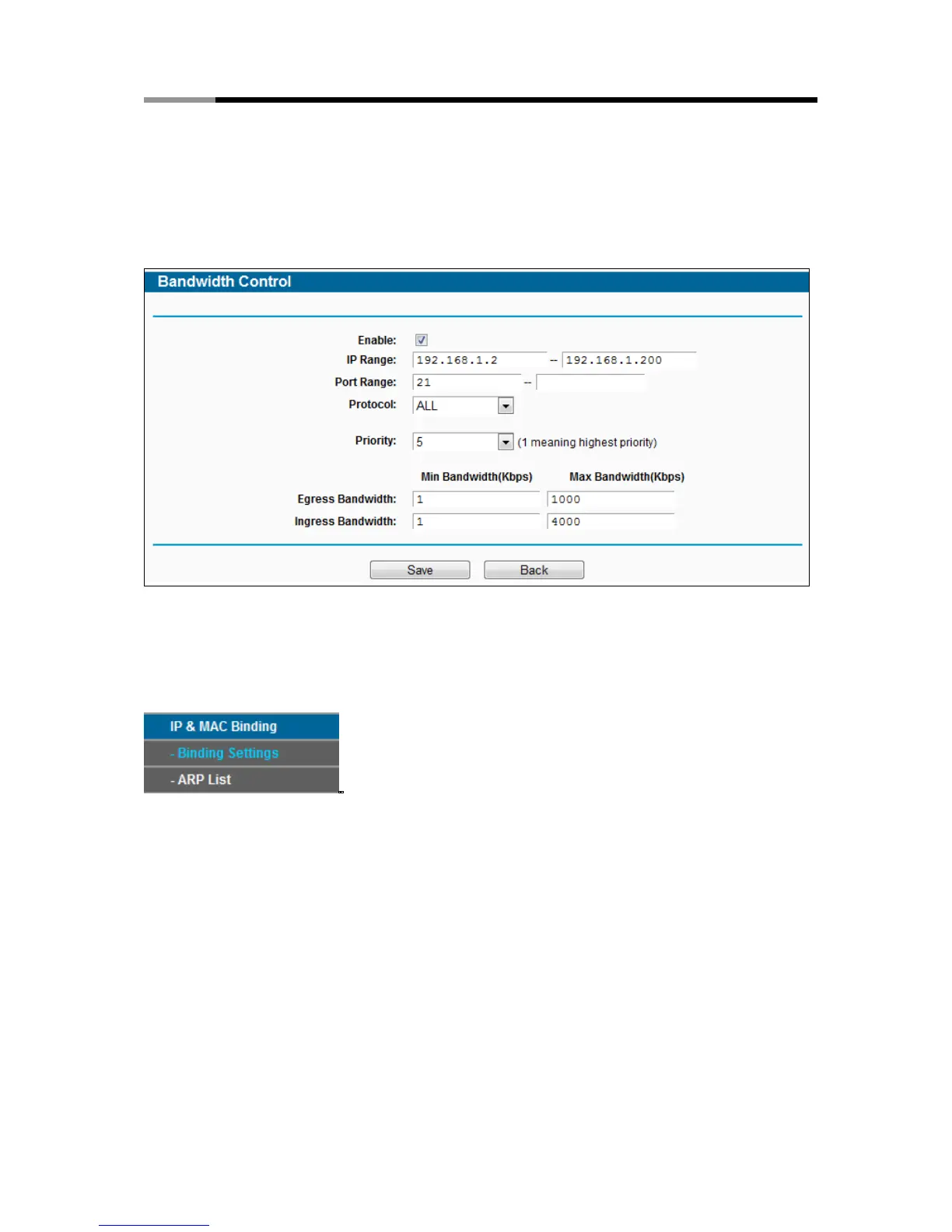 To add/modify a Bandwidth Control rule, follow the steps below.