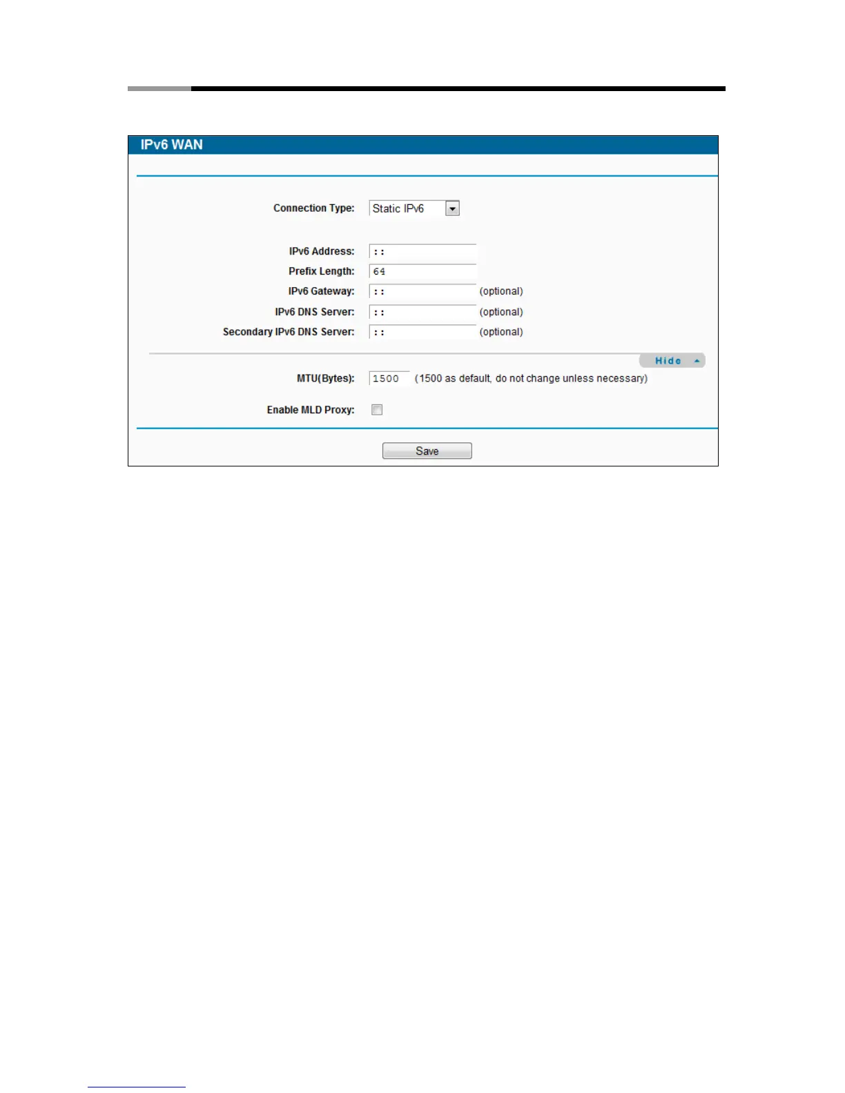 Enable MLD Proxy - Enable the Multicast Listener Discovery (MLD) Proxy function if you need.