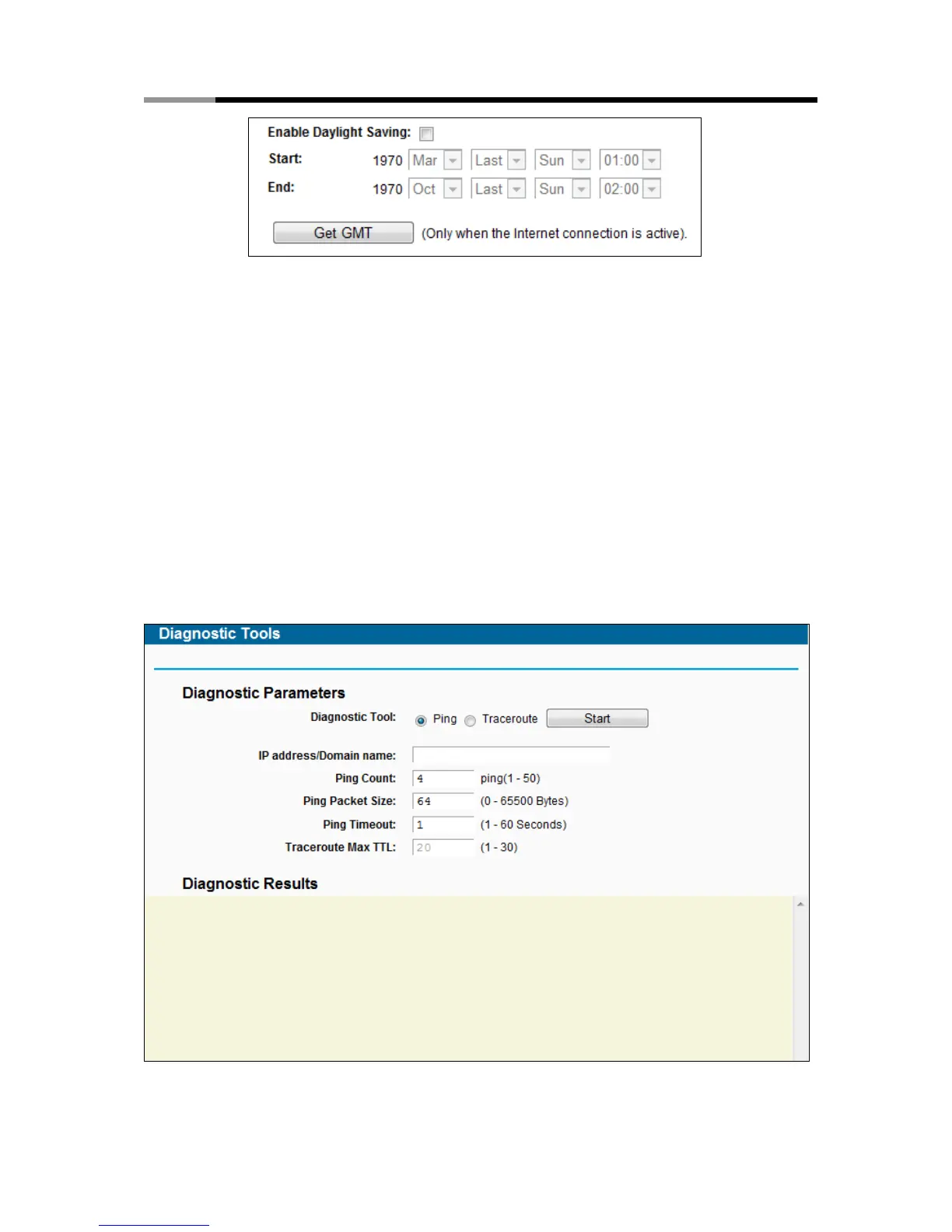Choose menu “System Tools → Diagnostic”, and then you can transact Ping or Traceroute