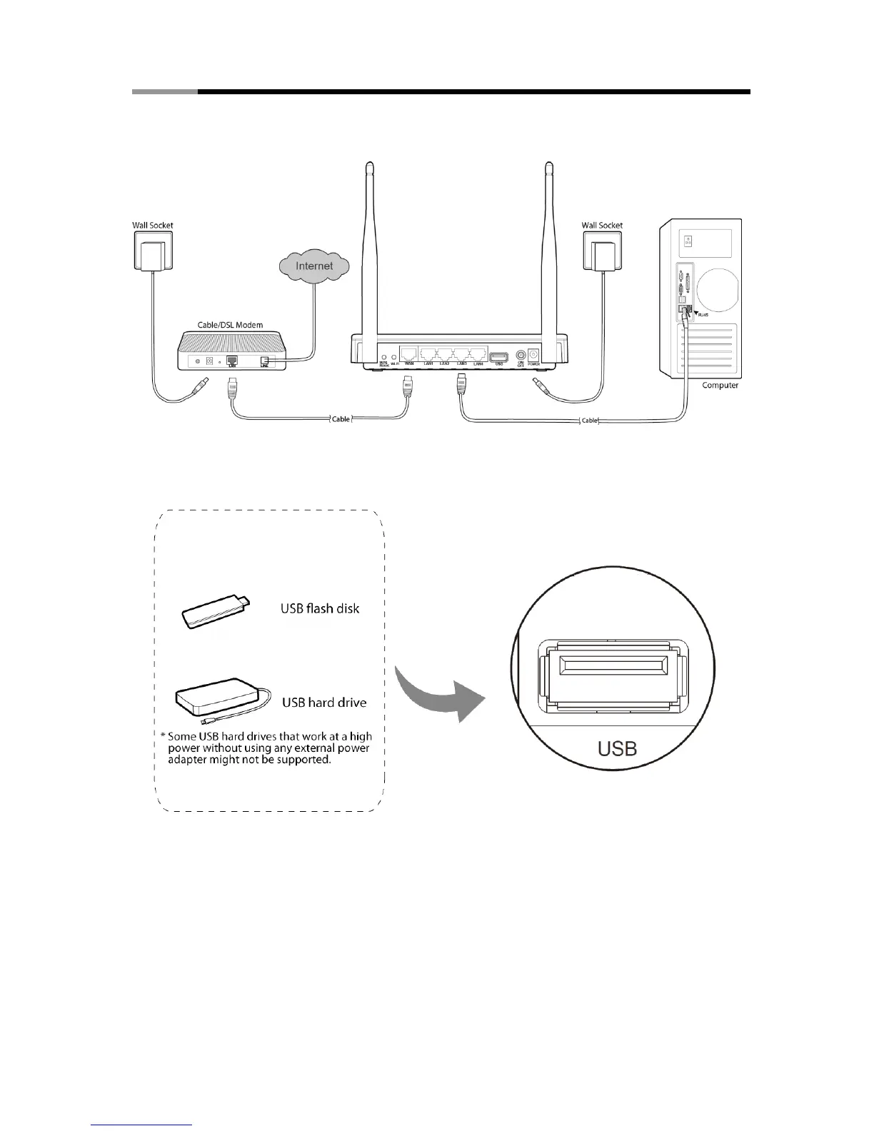 If you want to use the router to share files, plug the USB storage device to the USB port.