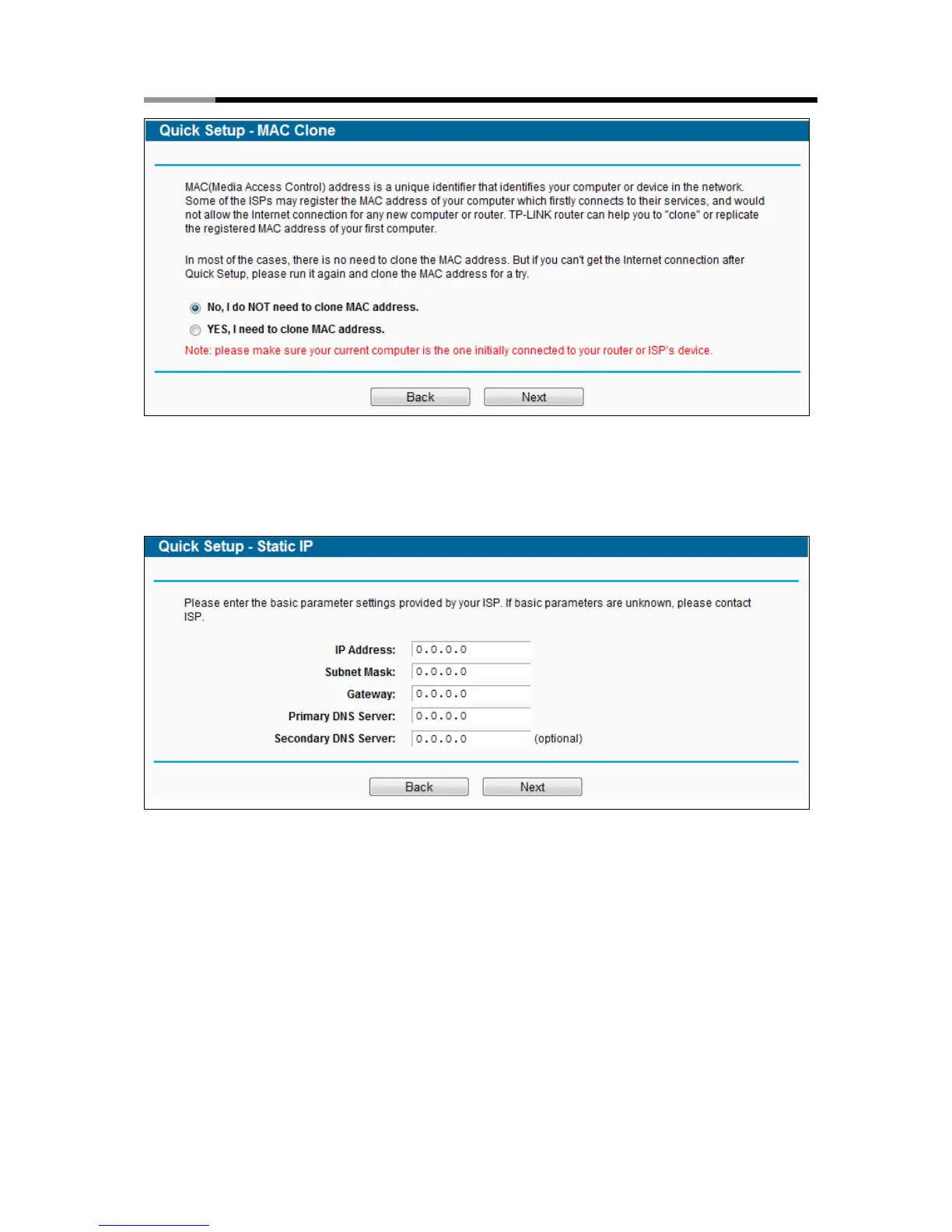 2) If the connection type detected is Static IP, the next screen will appear as shown in