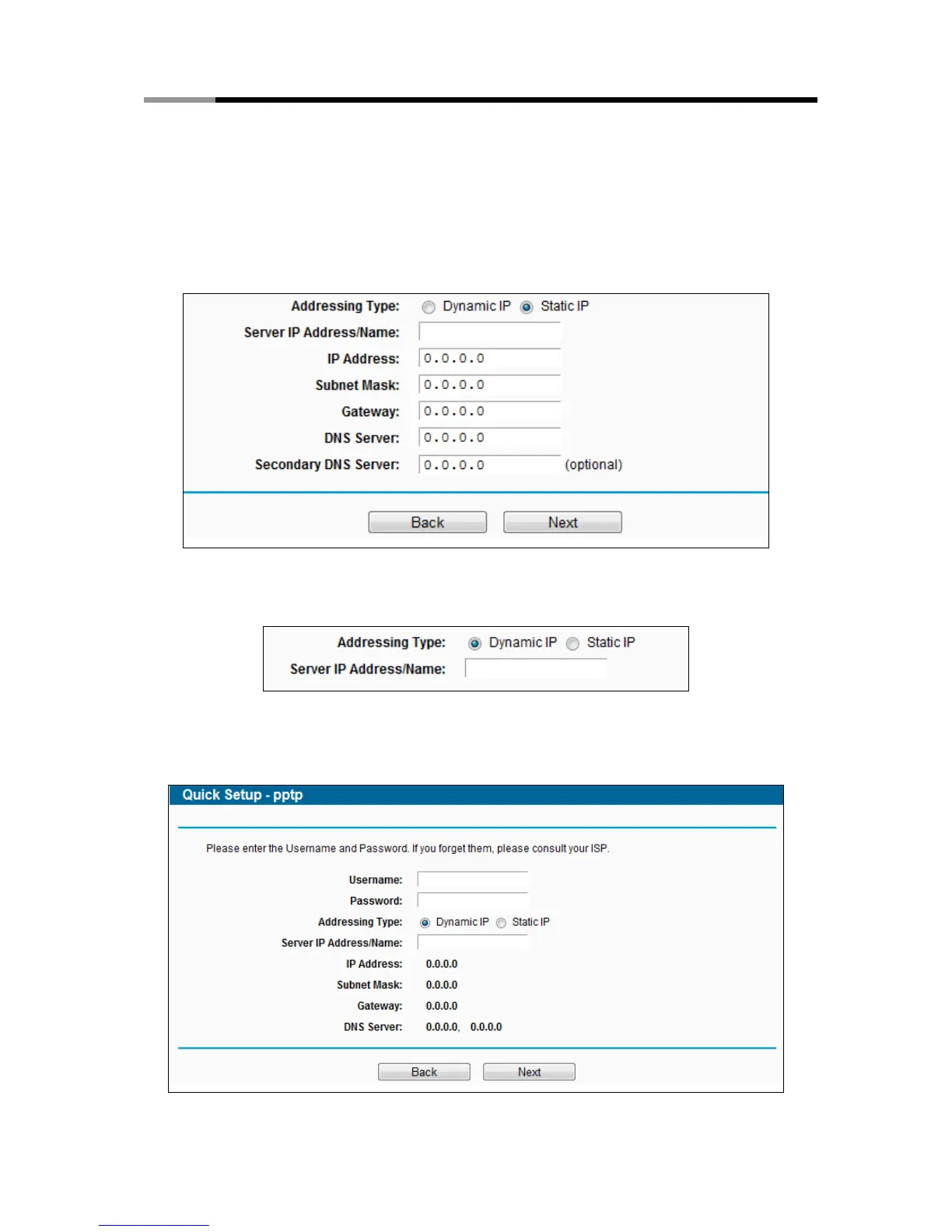Figure 3-11 Quick Setup – PPTP