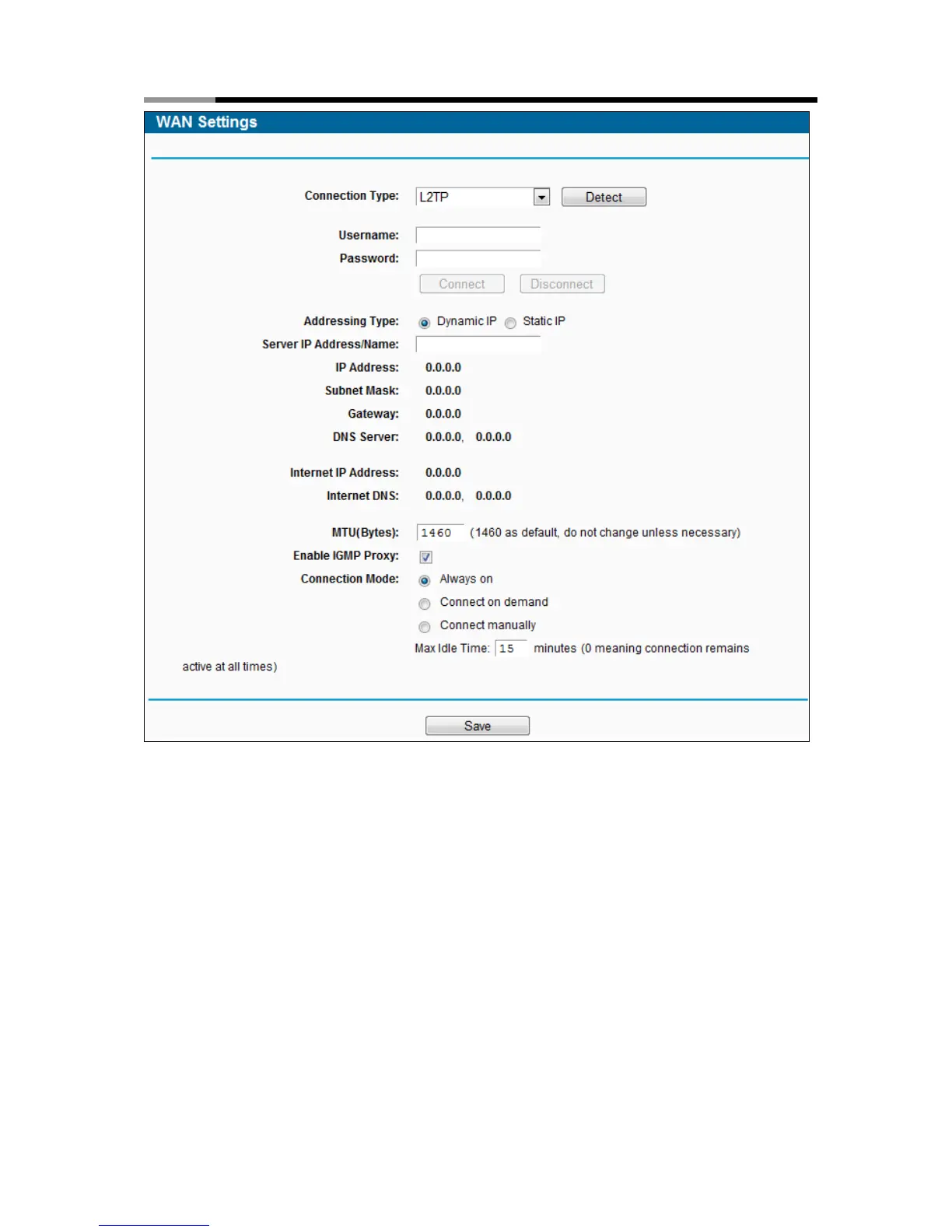 Connection Mode-choose the Internet connection mode.
