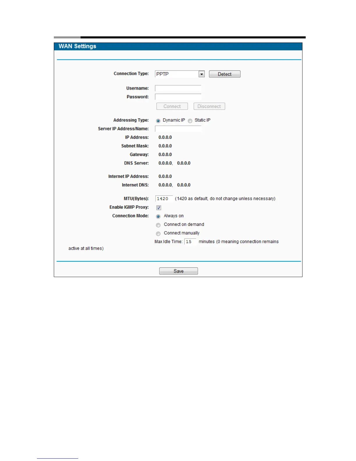 Figure 4-8 PPTP Settings