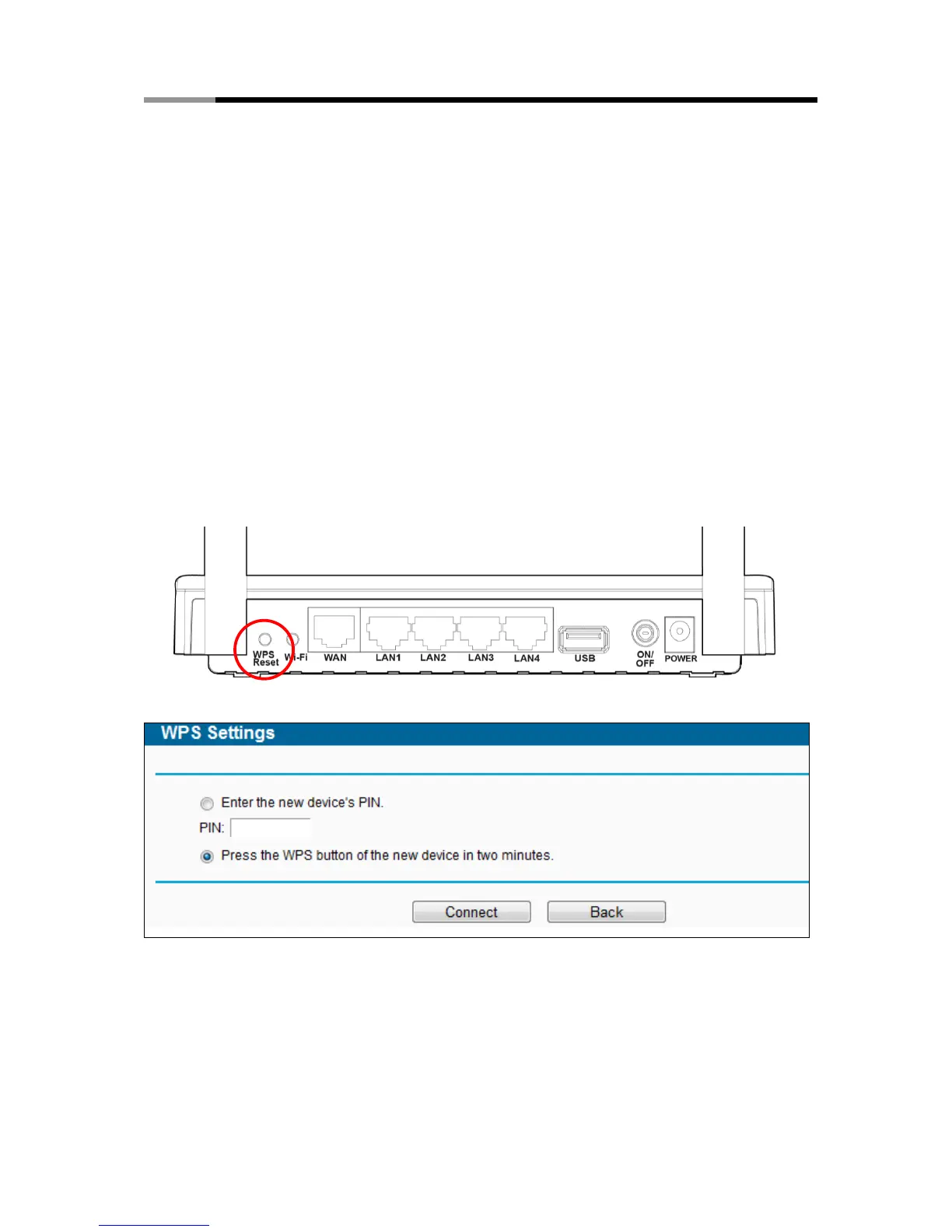 Step 1: Press the WPS/Reset button on the back panel of the router, as shown in Figure 4-31.