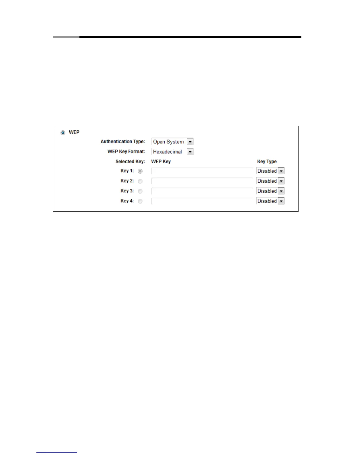 WEP Key - Select which of the four keys will be used and enter the matching WEP key