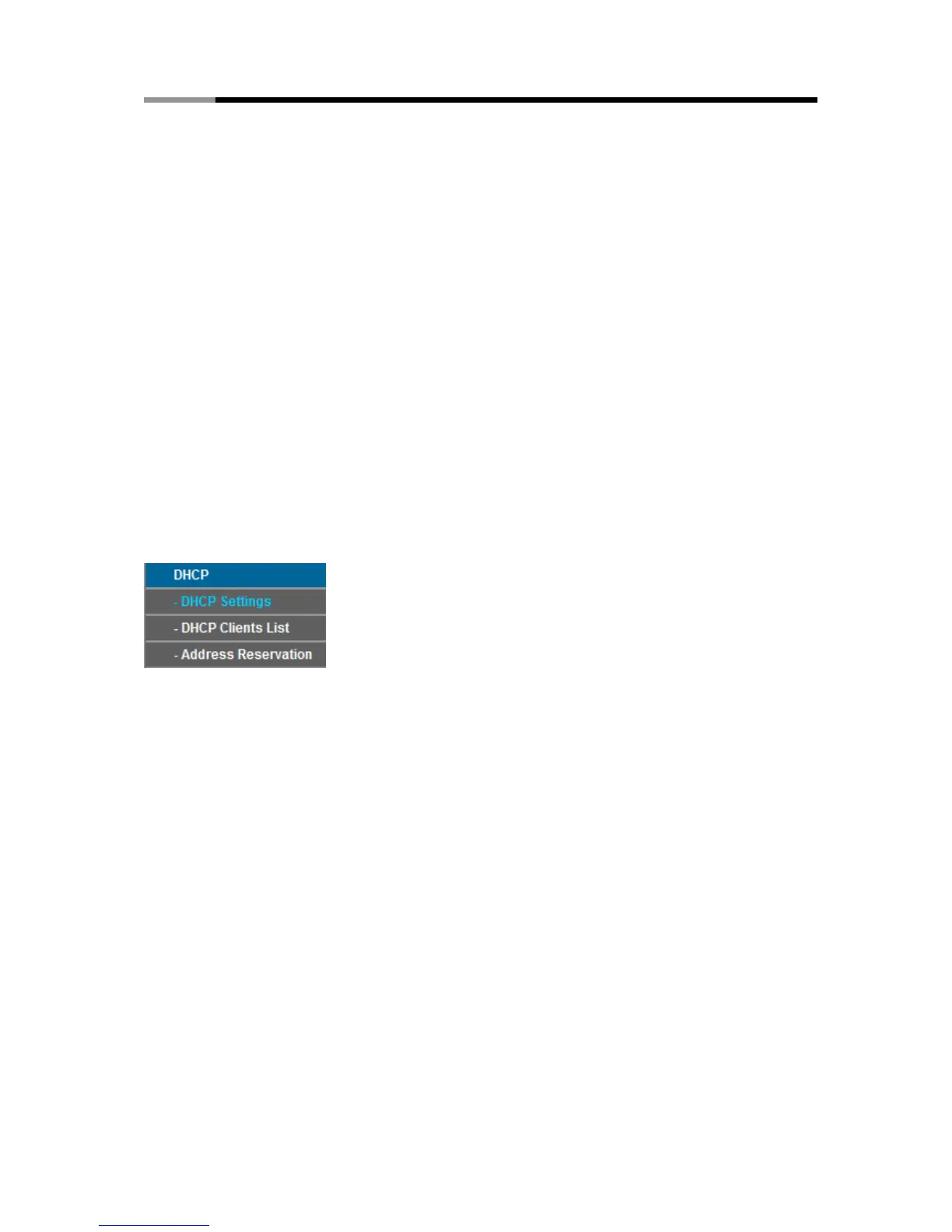 There are three submenus under the DHCP menu (shown in Figure 4-43): DHCP Settings,