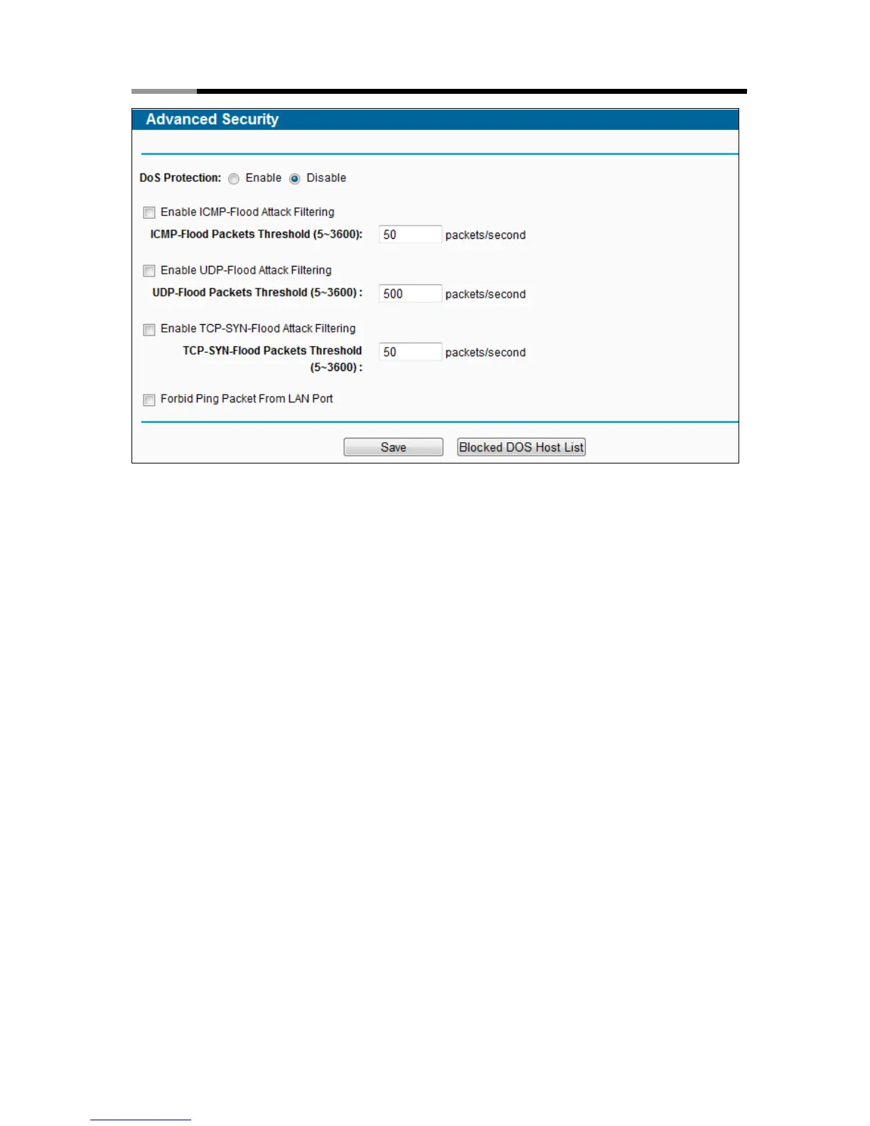 DoS Protection - Denial of Service protection. Check the Enable or Disable button to