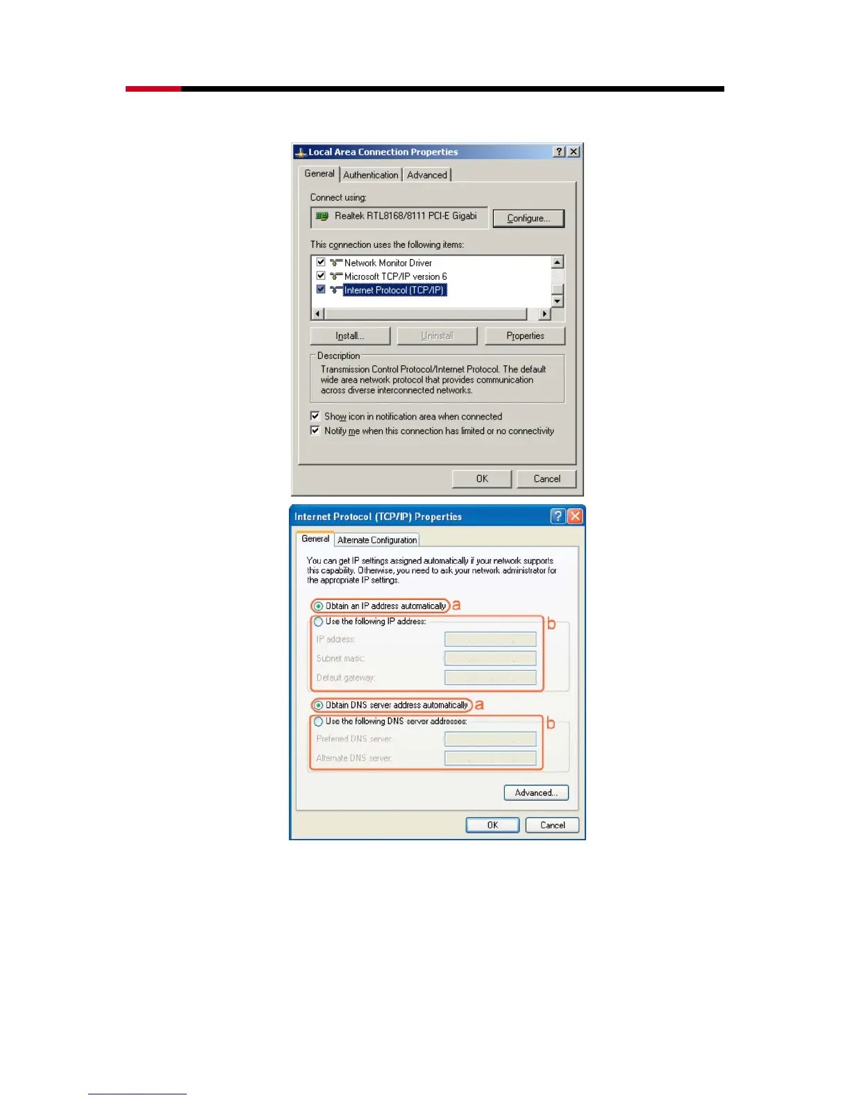 Select [Internet Protocol (TCP/IP)] =>Click [Properties].