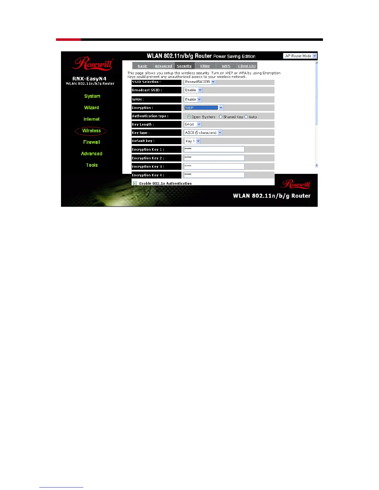 Key1 - Key4: The WEP keys are used to encrypt data transmitted in the wireless