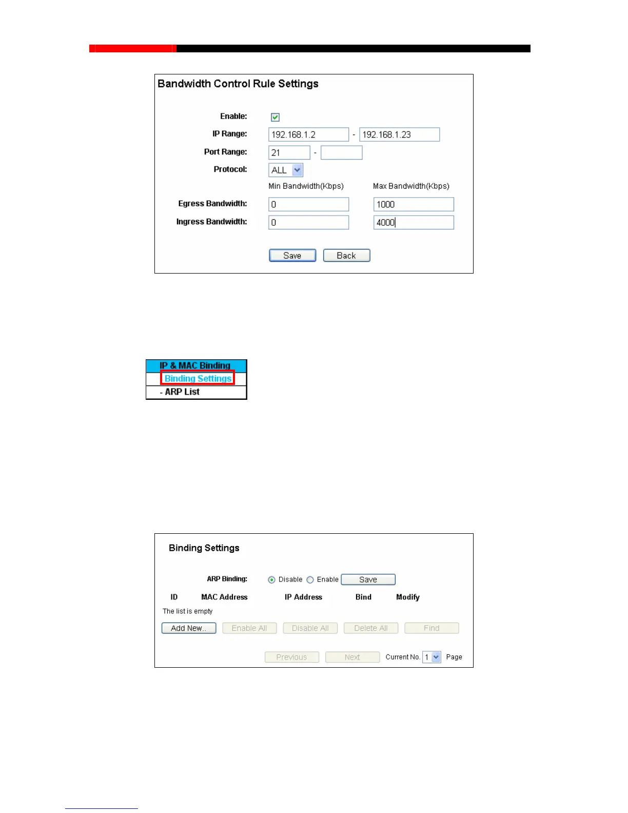 the IP &MAC Binding menu (shown in Figure 4-75): Binding