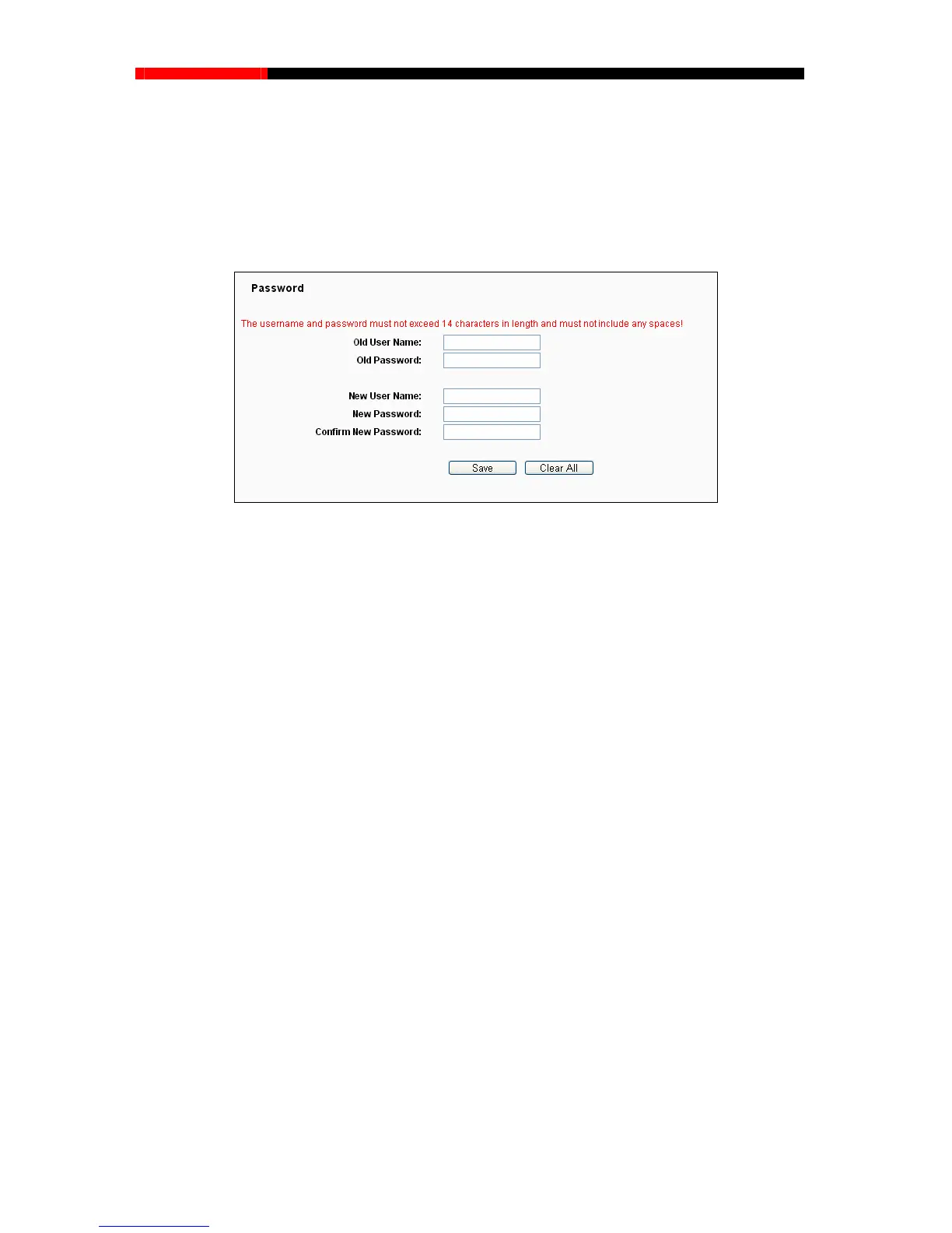 Choose menu “System Tools→Password”, you can change the factory default user name and