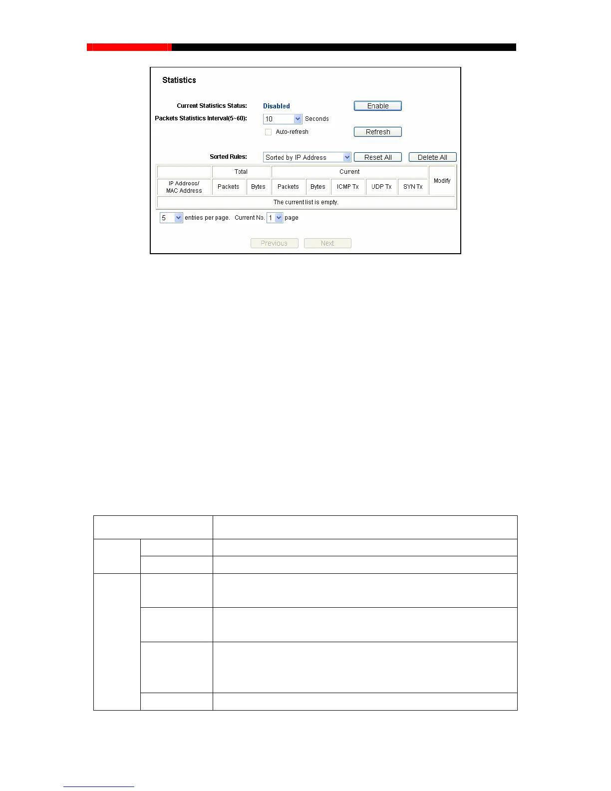Packets Statistics Interval(5-60) - The default value is 10. Select a value between 5 and