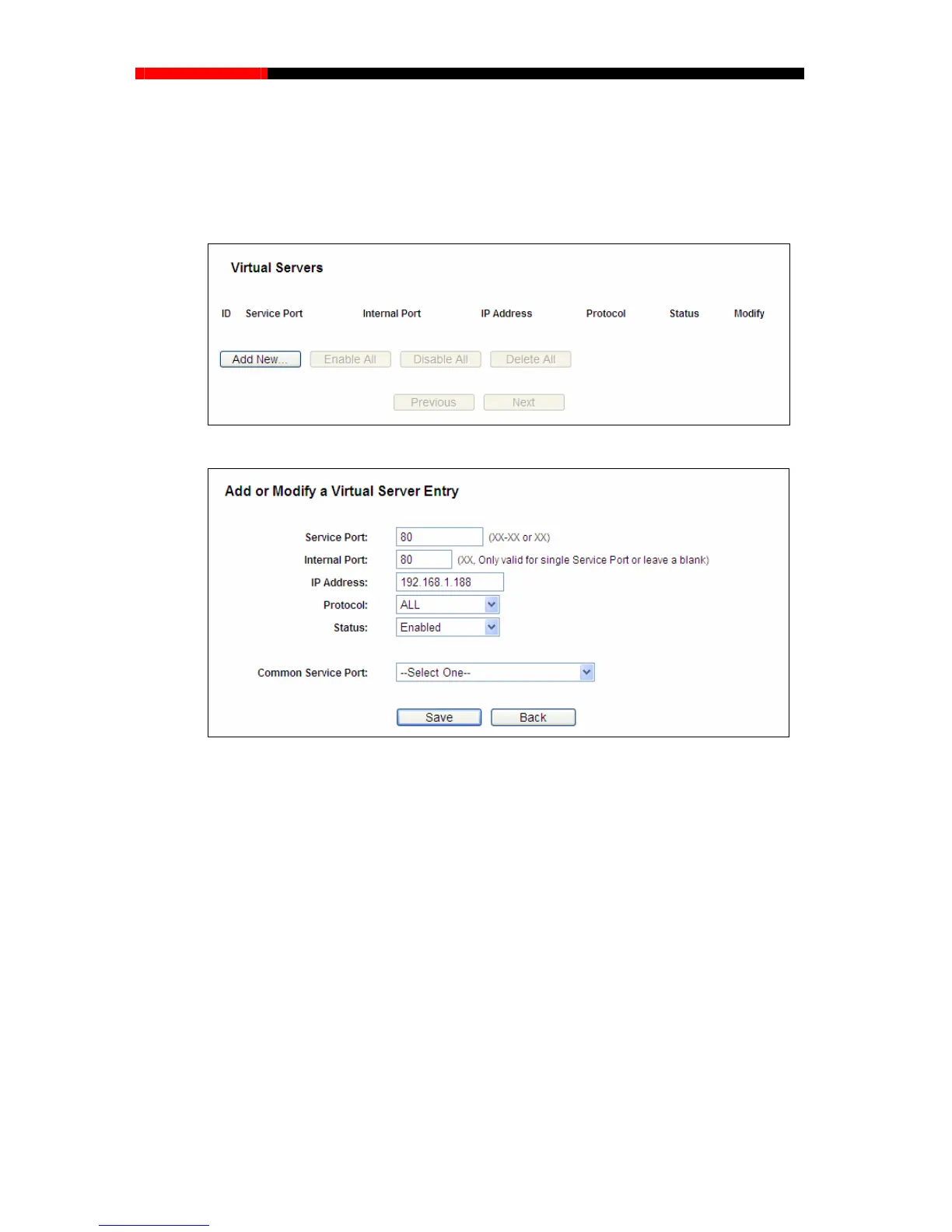 the “Add or Modify a Virtual Server” page, enter “80” into the blank next to the “Service