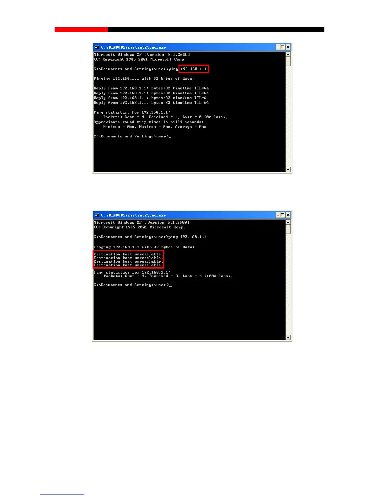 Figure 3-2 Failure result of Ping command