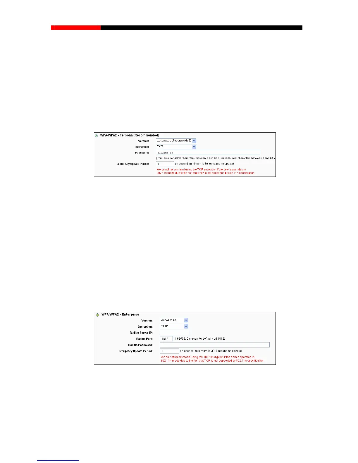 If you check the WPA /WPA2 - Personal (Recommended) radio button and choose TKIP