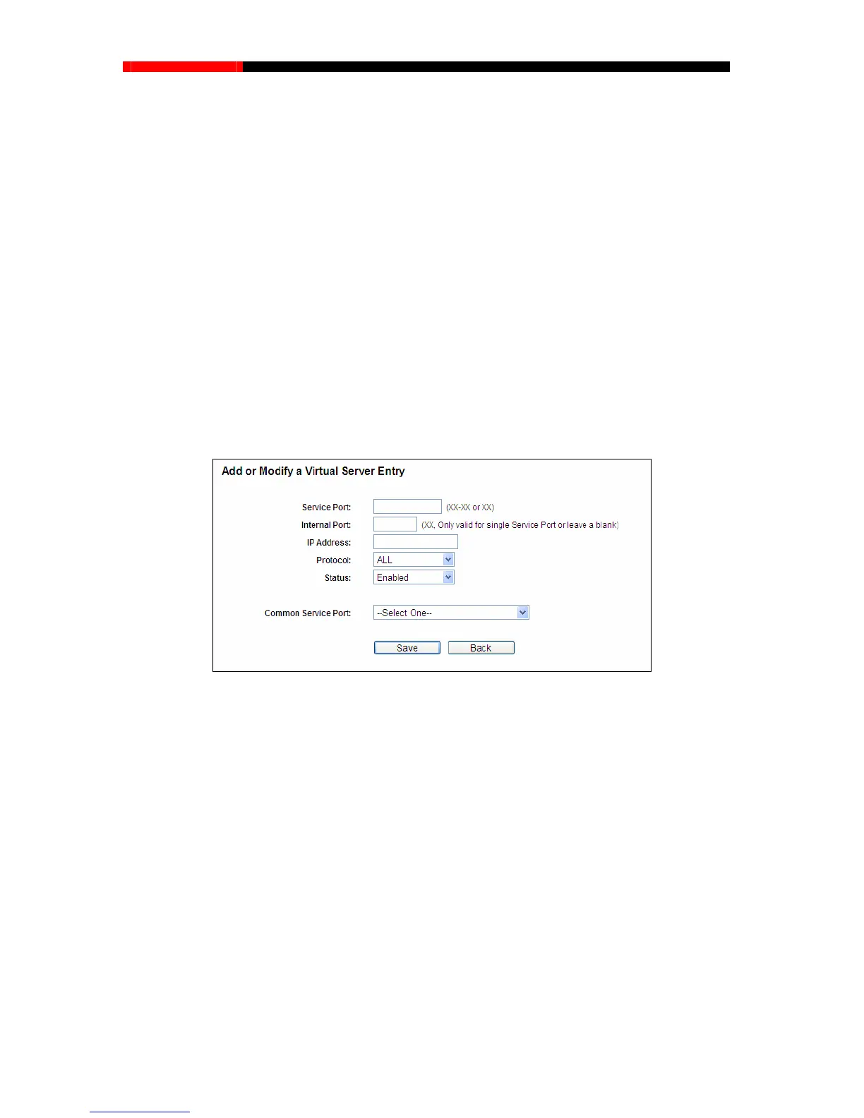 number or service port range in the Service Port box. For single Service Port, please enter a
