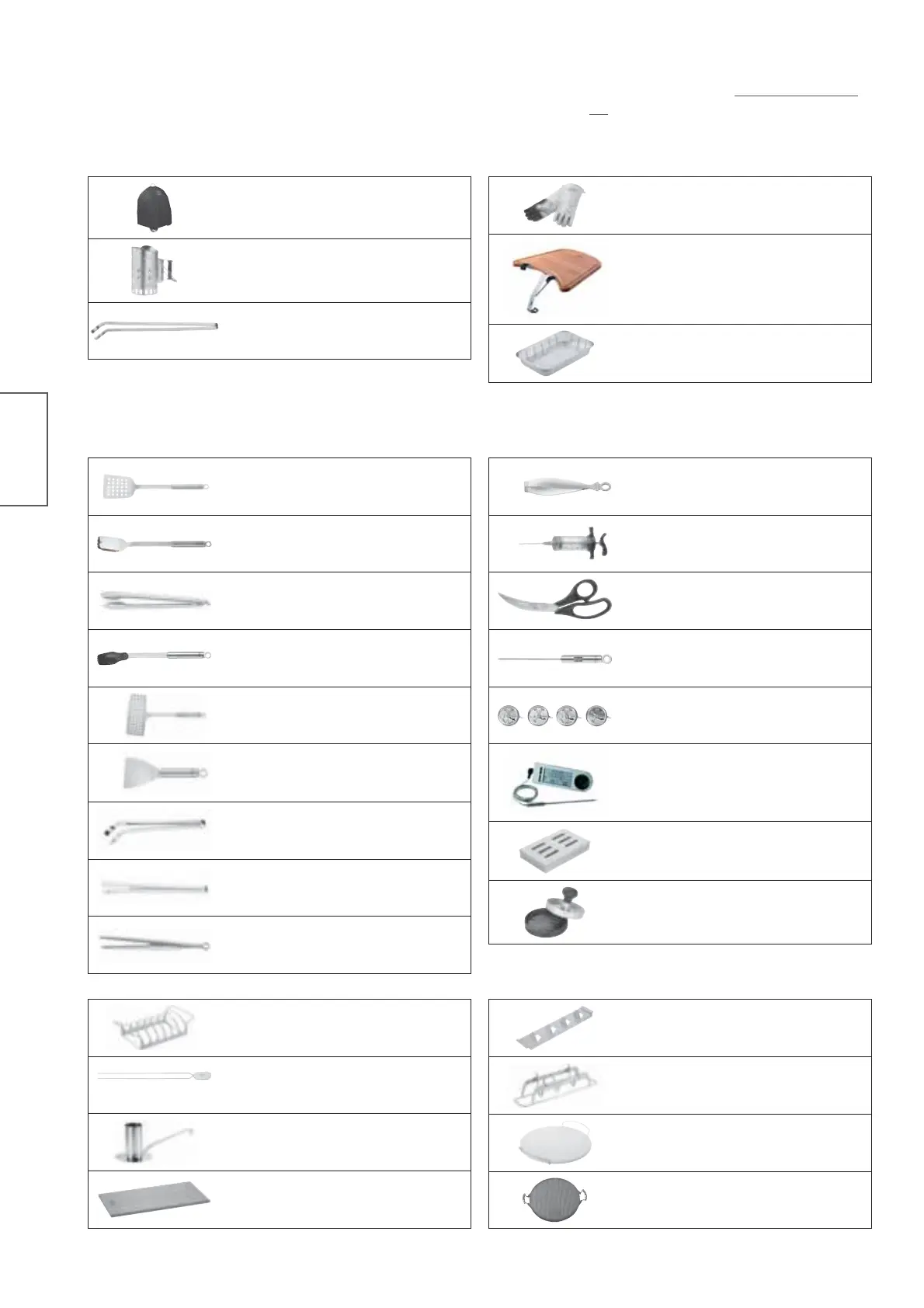 De volgende barbecue-accessoires zijn verkrijgbaar voor uw