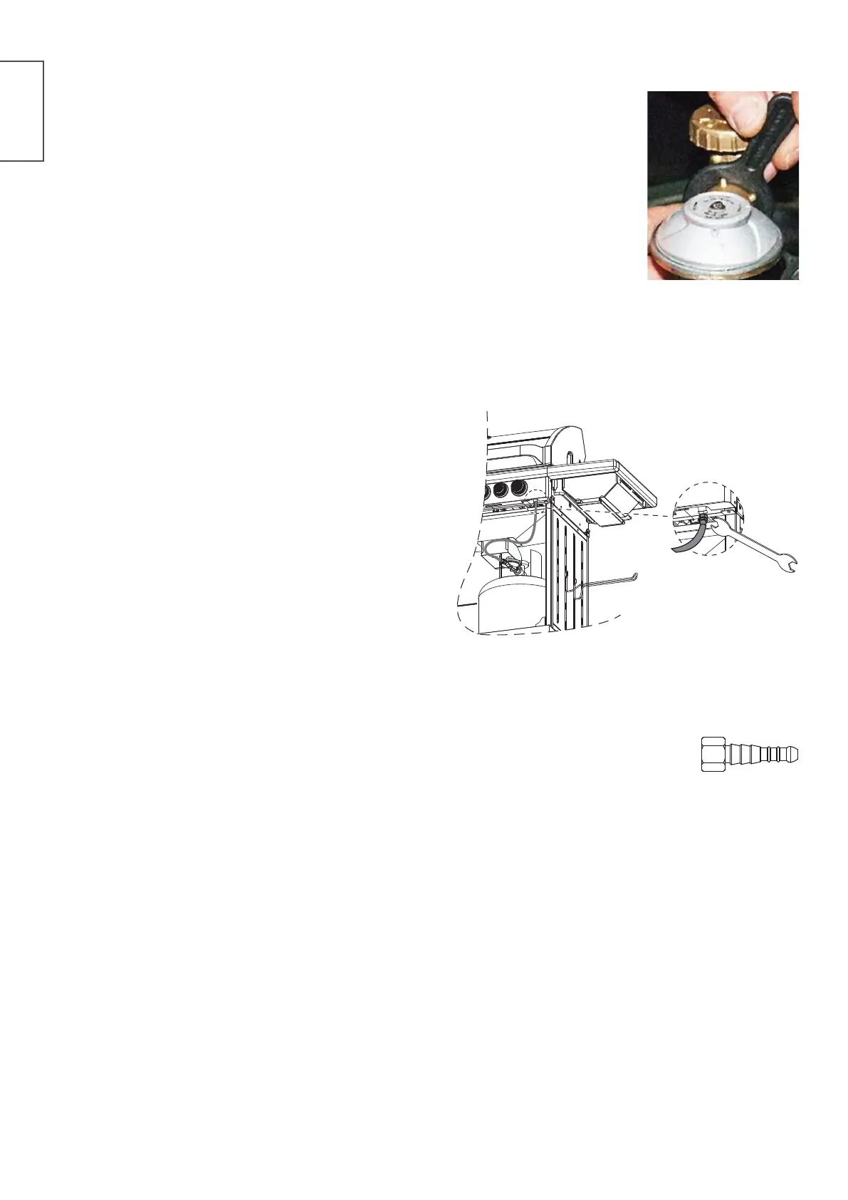 7. Nachdem Sie die Verbindung vom Gasschlauch / Druckregler zum Gasgrill montiert und kontrolliert