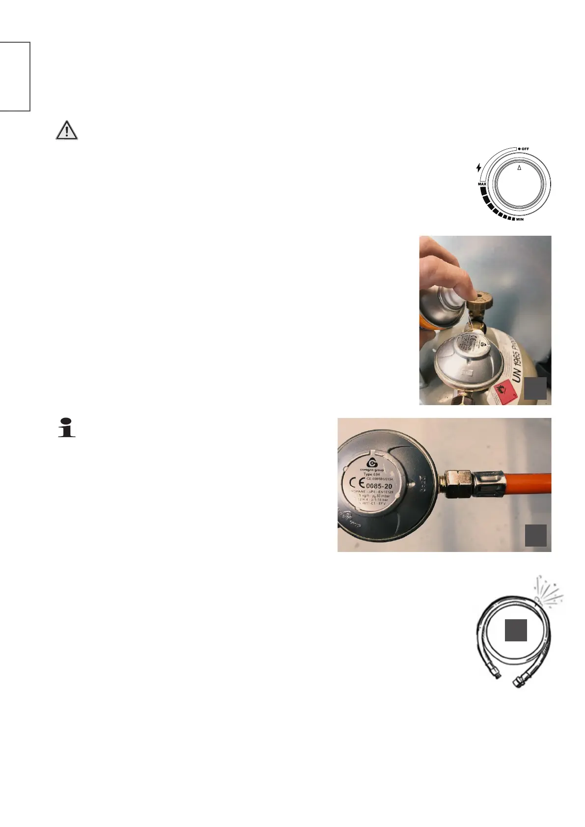 Prüfen Sie die Gasanschlüsse vor jeder Inbetriebnahme zu Ihrer eigenen Sicherheit!