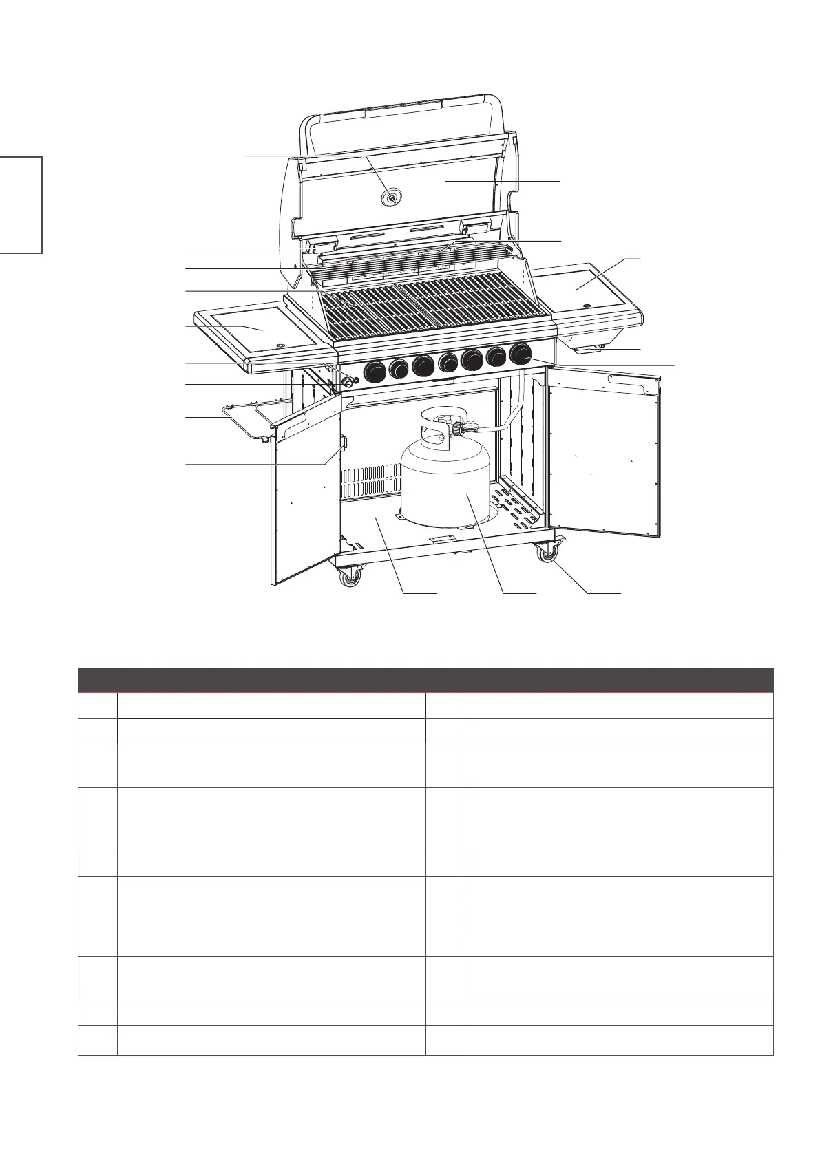 8 Gas cylinder with holder and gas regulator 16 Warming rack