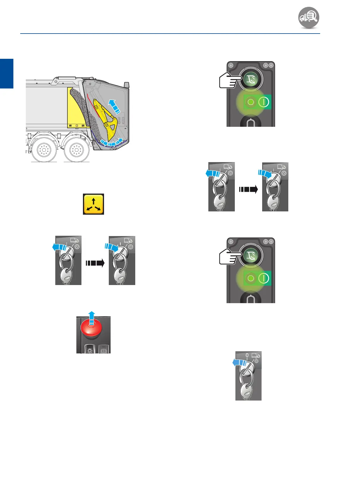 62. Pull the ‘Emergency stop’ push‑button outwards.