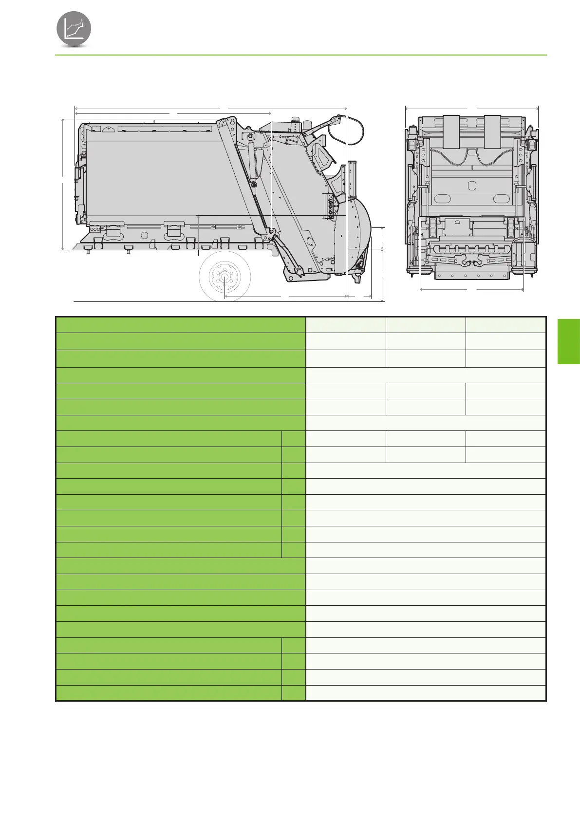 a waste container lifting device and fitted with standard tyres; tyre deflection is not included. On vehicles