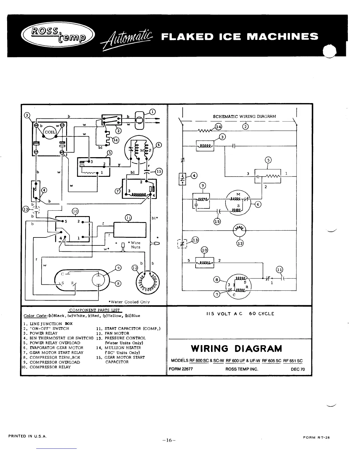 Ross Temp RF-151-SC - SCHEMATIC WIRING DIAGRAM; WIRING DIAGRAM RF-600;605;651 SC MODELS