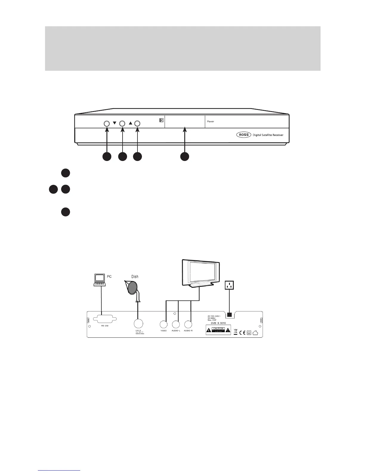 • RS232C: Upgrade function. Connect to PC or another set top box