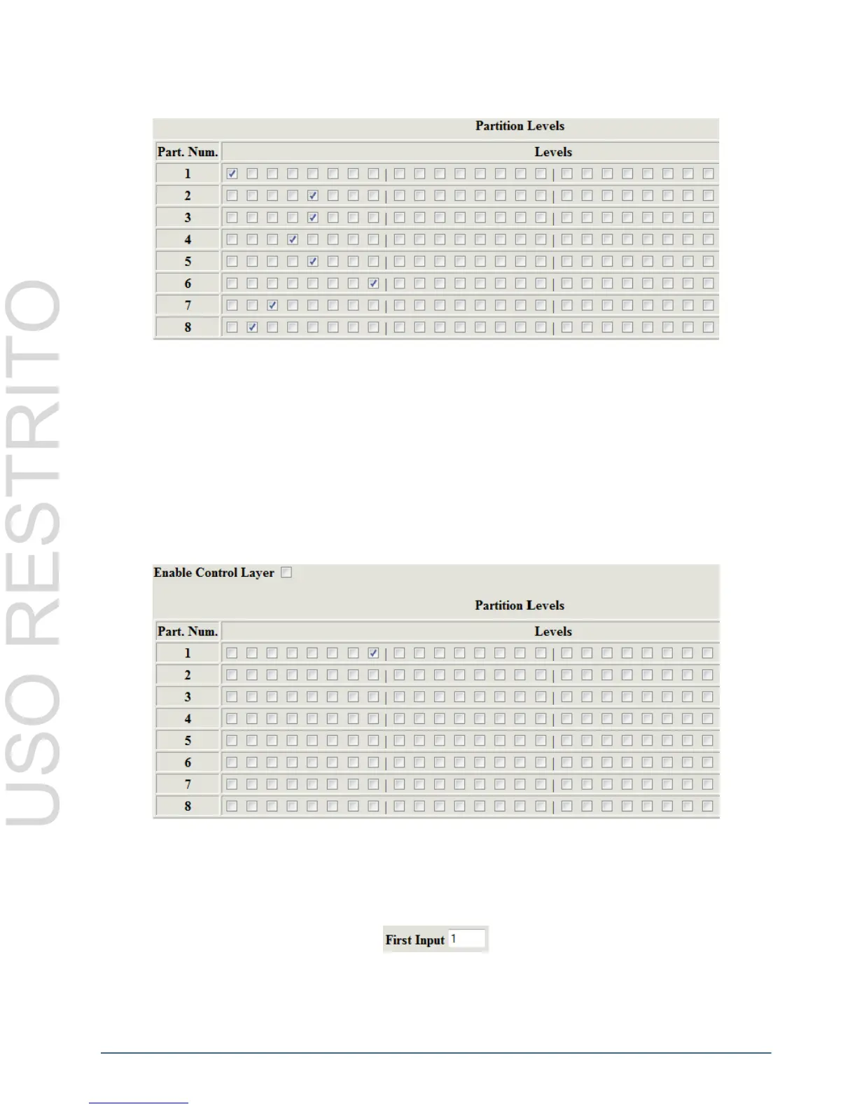 The Control Layer Partition table allows users to configure levels to each partition. Selecting a level, by selecting a