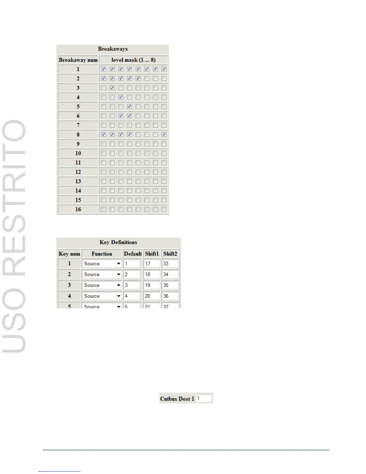 Configures the Cutbus destination of the top row of keys when no DESTINATION or CROSSPOINT keys have