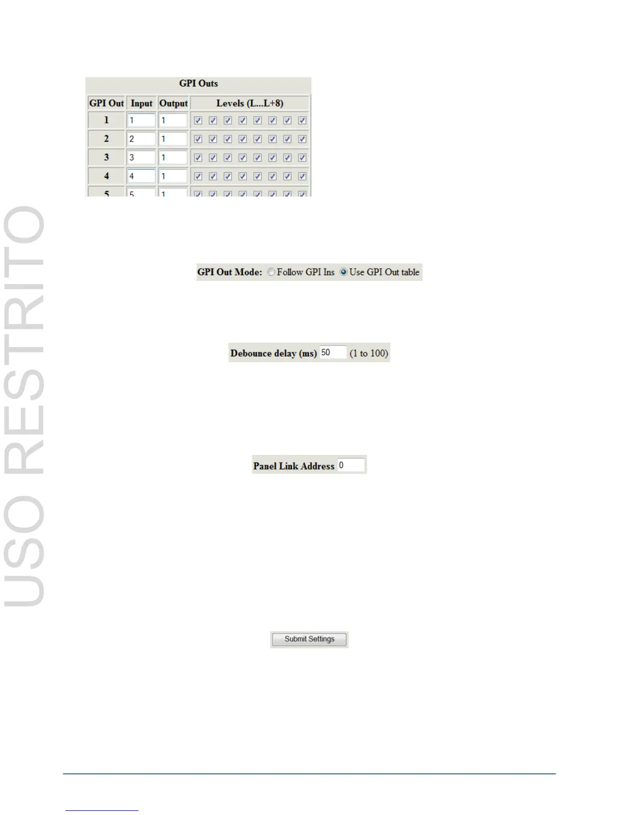 The Panel Link Address is required when users wish to use a panel to select the GPI outputs. When switches are