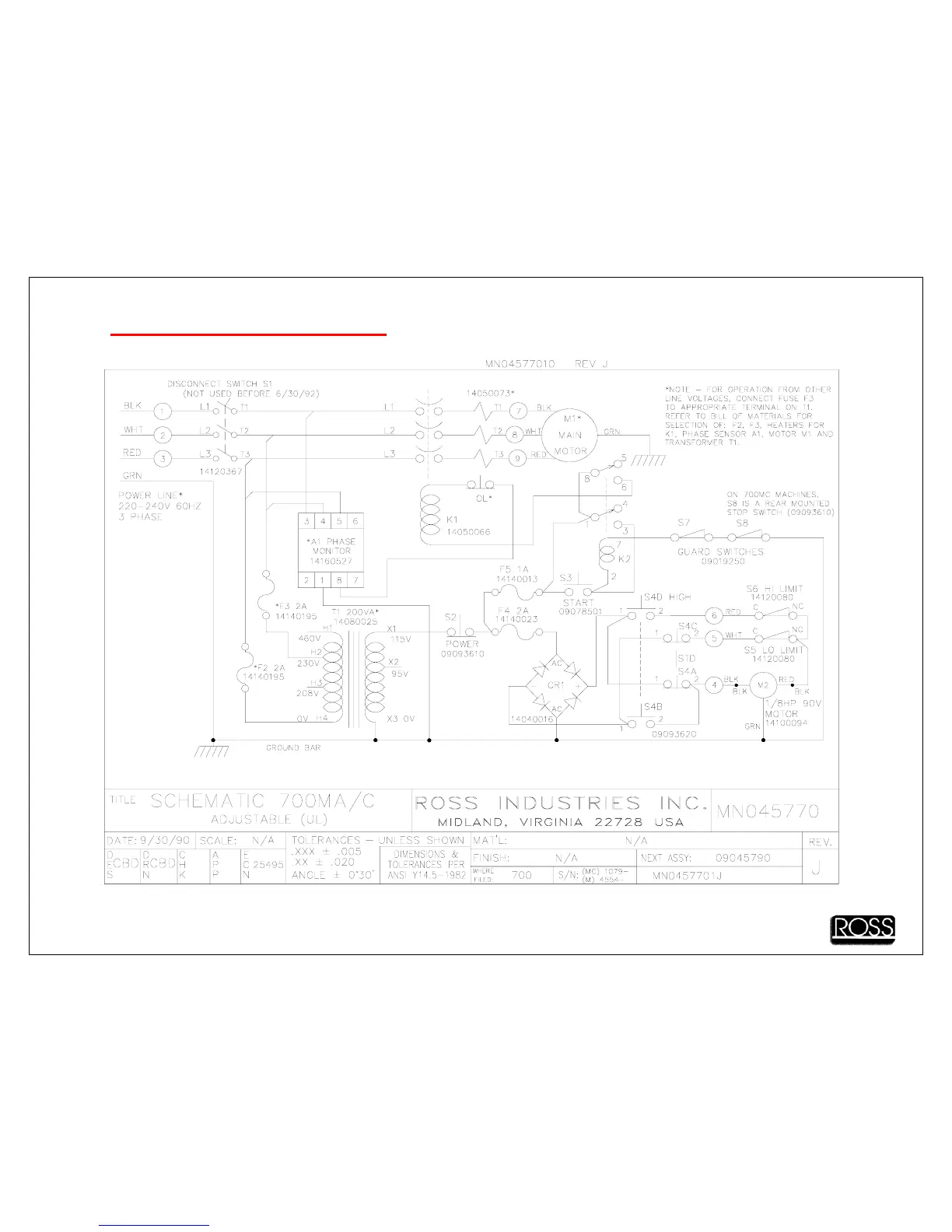Ross TC700M - 9 Wiring;Schematic