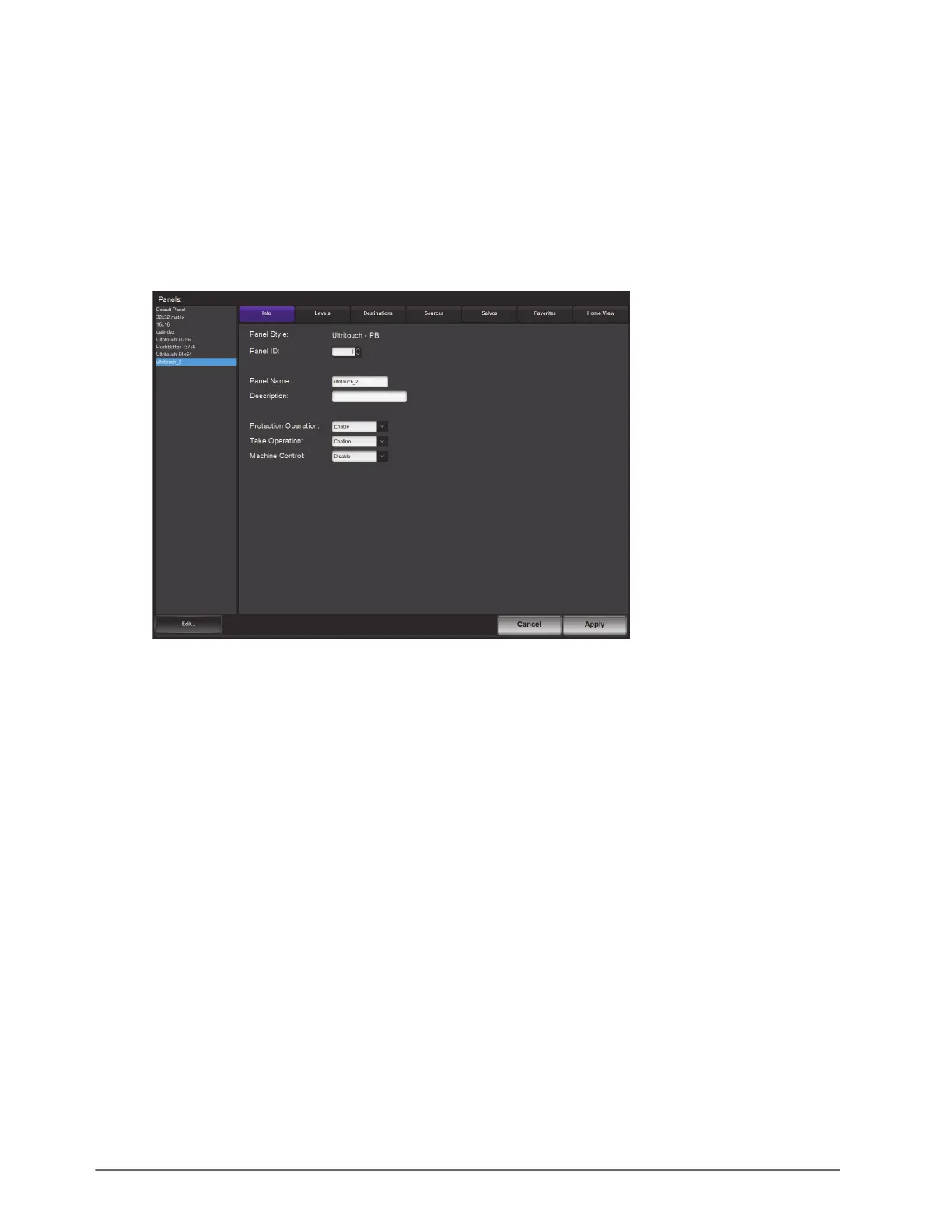 destination/source selection is made by the user on the soft panel. This is the default setting for Ultritouch