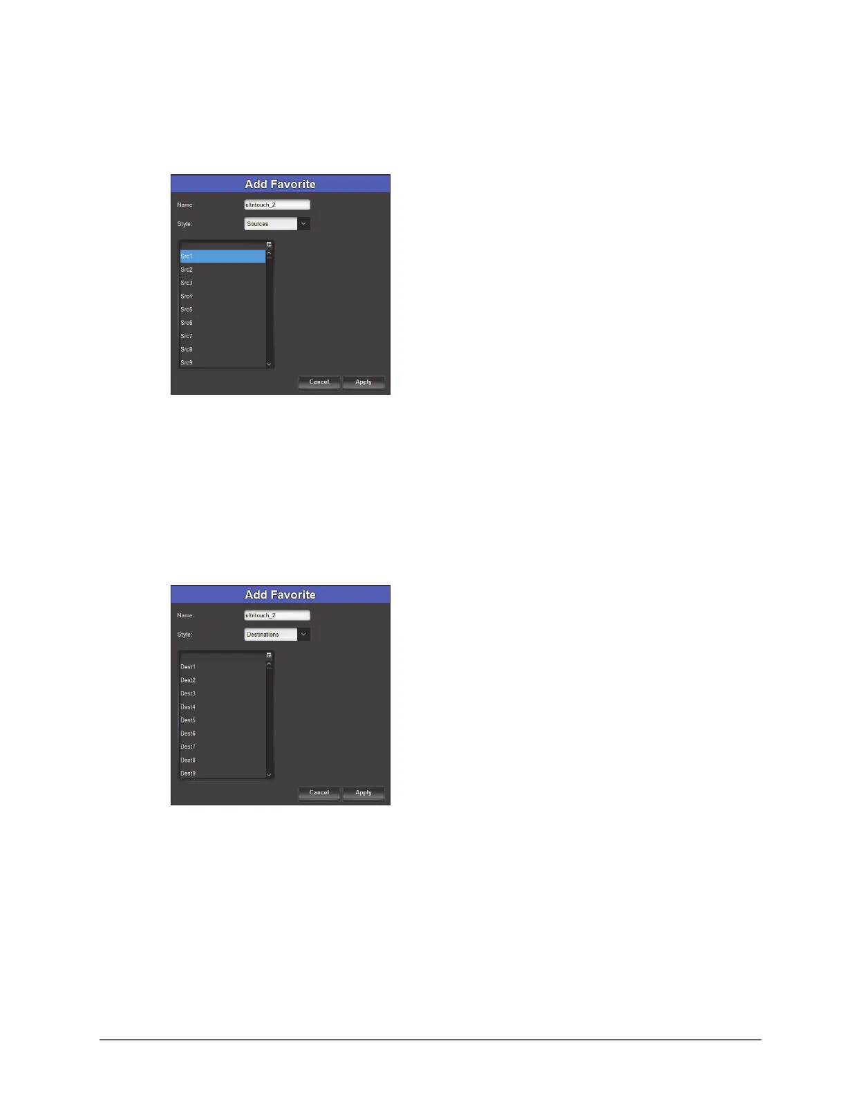 2. Select the source to access when this Favorite button is tapped on the panel.