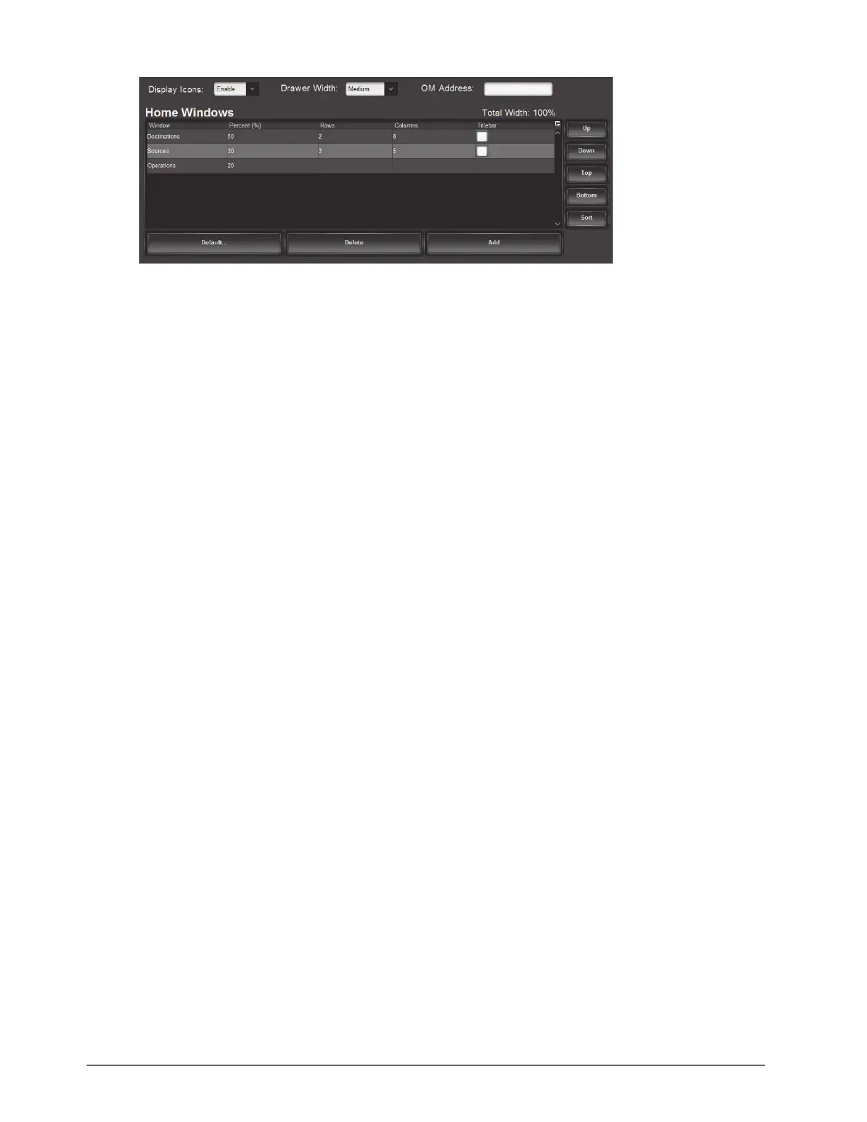 In the example above, the Destinations window is set to 50% while the Sources window is set to 30%.