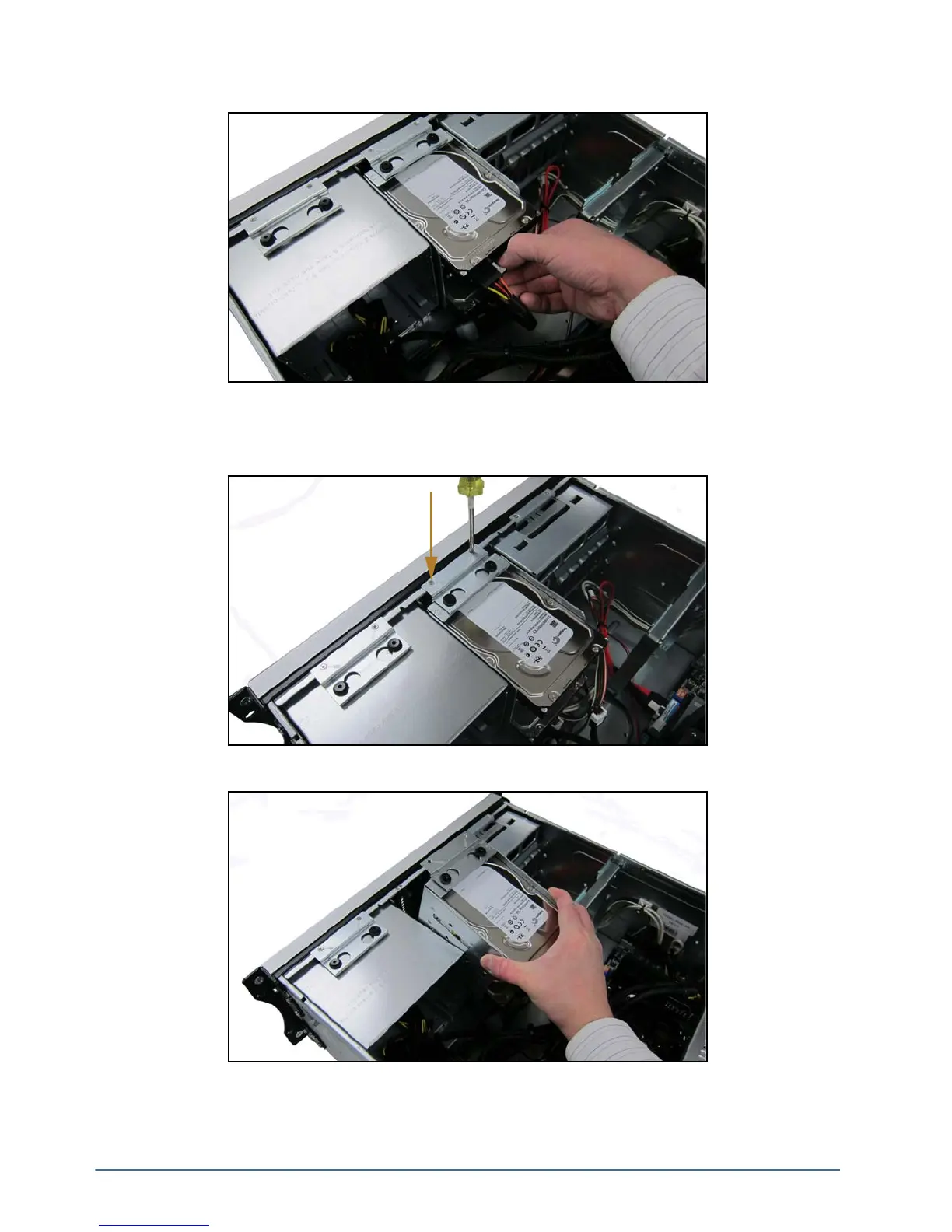 5. Using a Phillips head screwdriver, remove the two screws located on the top of the drive cage at the front of the