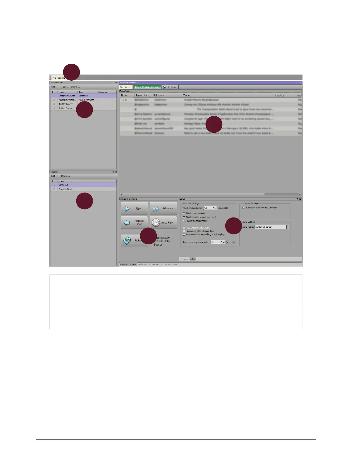 The following screen capture displays the main elements of the XPression Connect user interface. Descriptions of