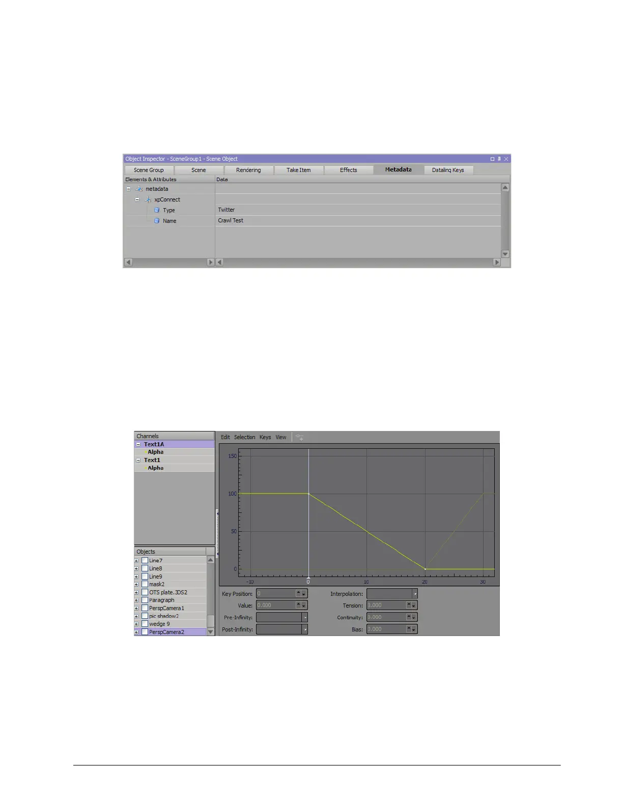 To assign animation to the scene or scene group, add three animation controllers named In, Change, and Out.