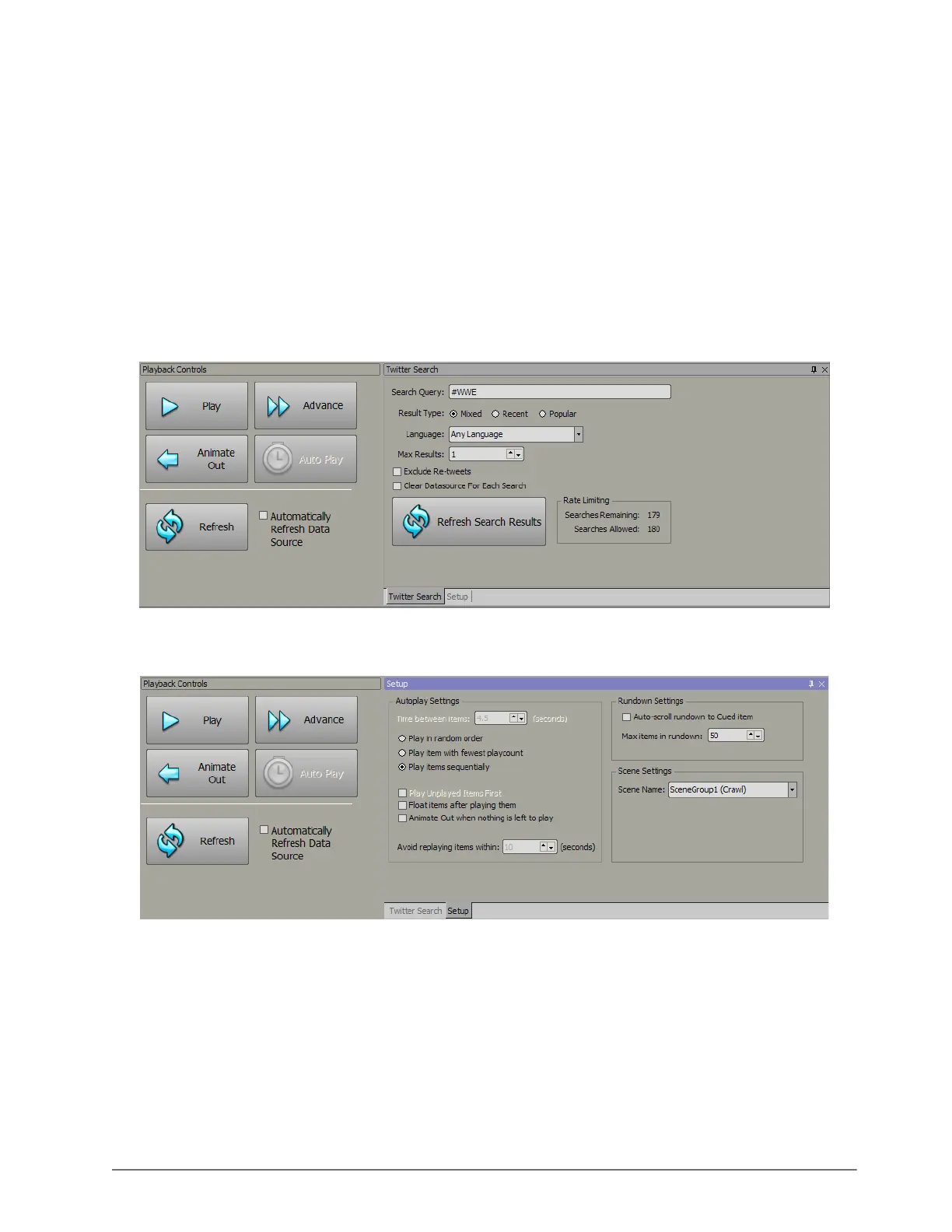 f. Select the Clear Datasource For Each Search check box to clear the tweets in the Data Source window