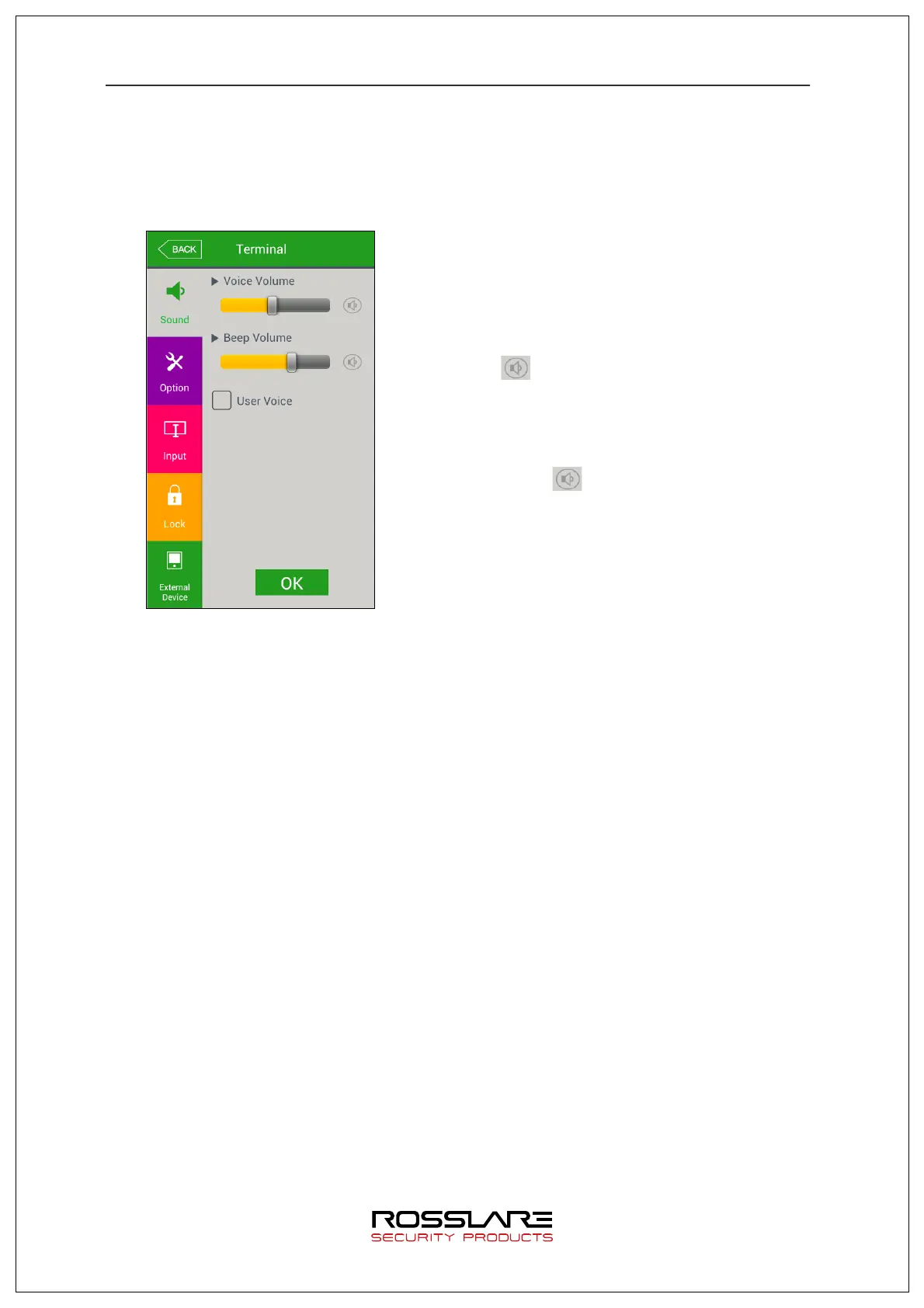 Scroll to the left/right in 0~15 steps to set voice