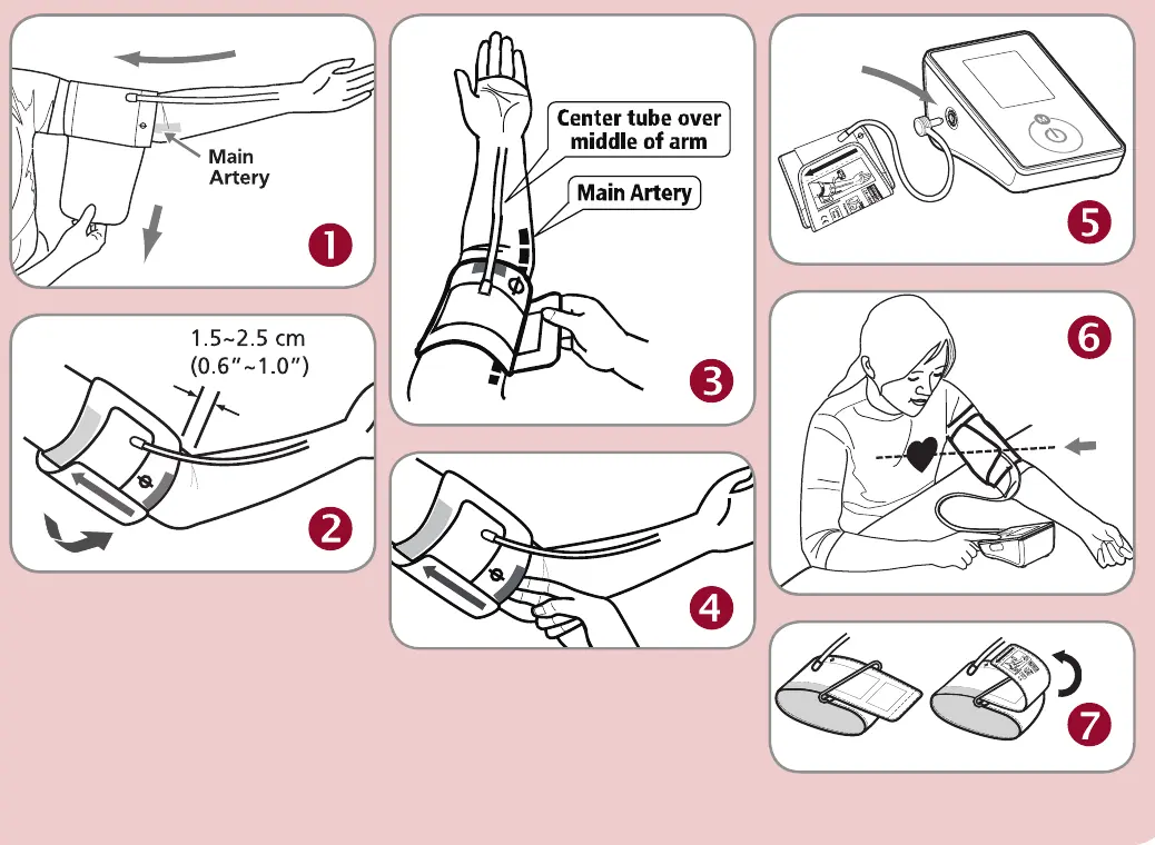 während der Blutdruck-Messung nicht bewegen darf. Das dazu gehörige Logo