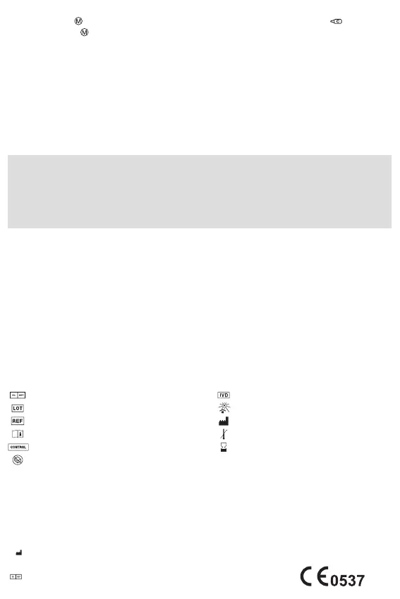 2. Press and hold button for 2 seconds to change to the Control Solution test mode. " " will appear