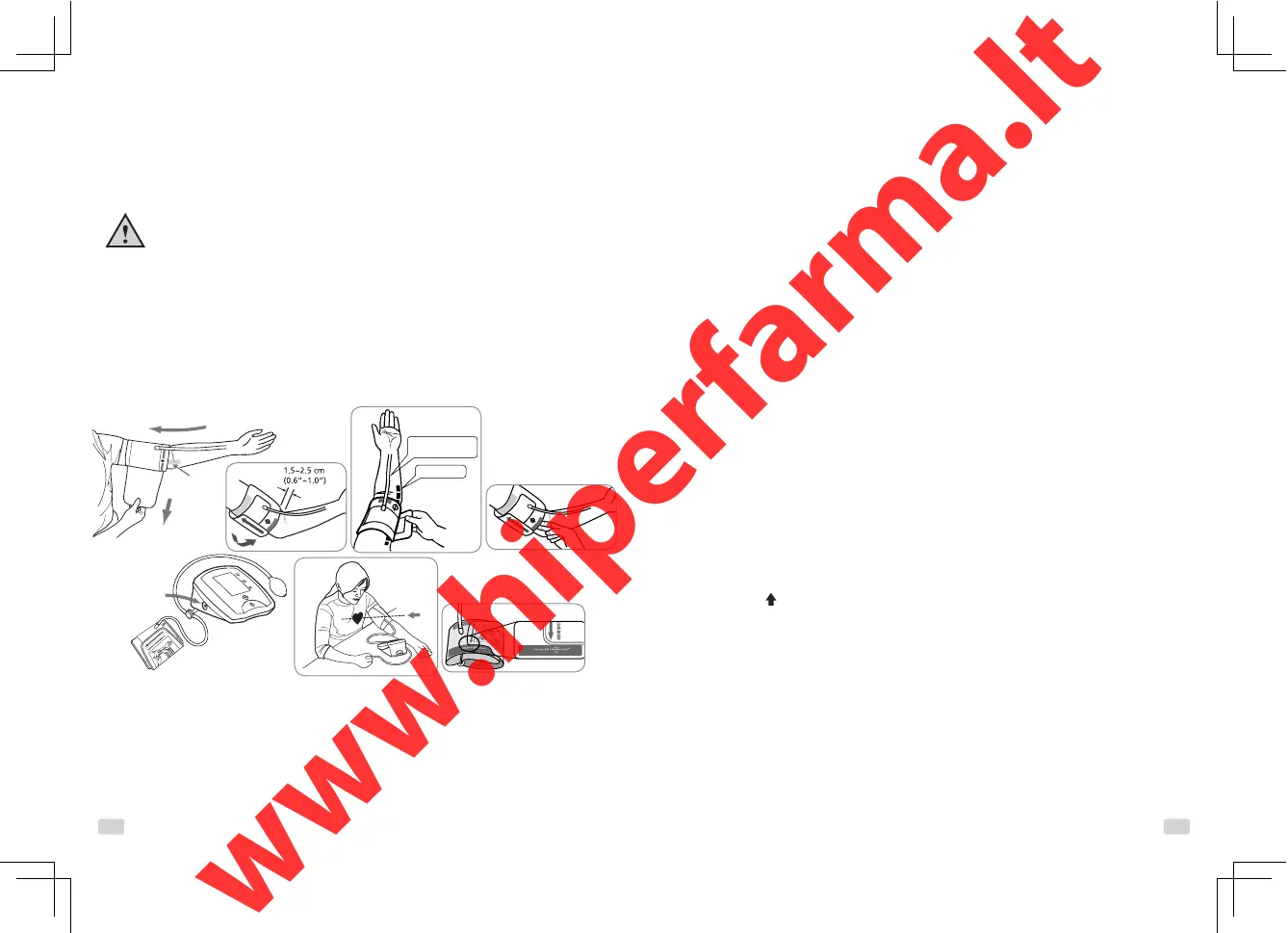 ning asetage manseti serv ligikaudu 1,5 kuni 2,5 cm küünarnukiliigese siseküljest ülespoole