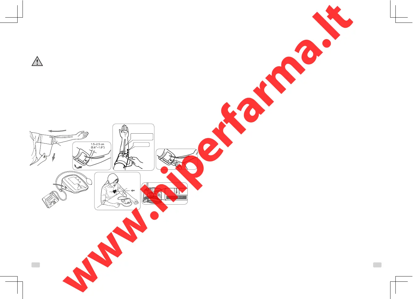 1) Розверніть ліву руку догори і розташуйте нижній край манжети на відстані приблизно