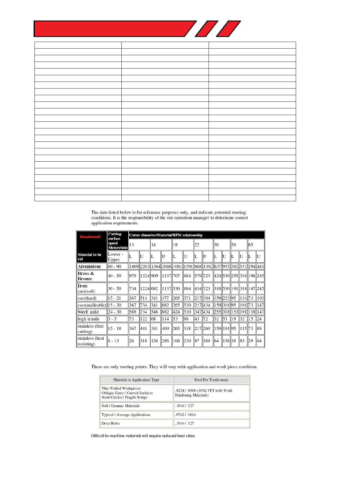 Rotabroach Element 100 Series - Cutter Selection and Speeds